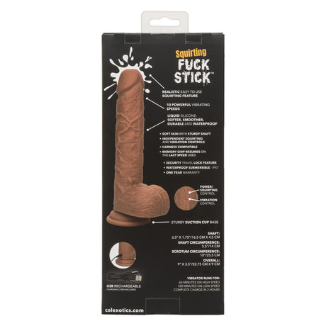 Squirting Fuck Stick 9" Vibrating Silicone Suction Cup Dildo - Brown