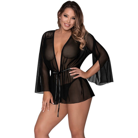 3pc Sexy Lace Robe Cutout Bra and Panty Set