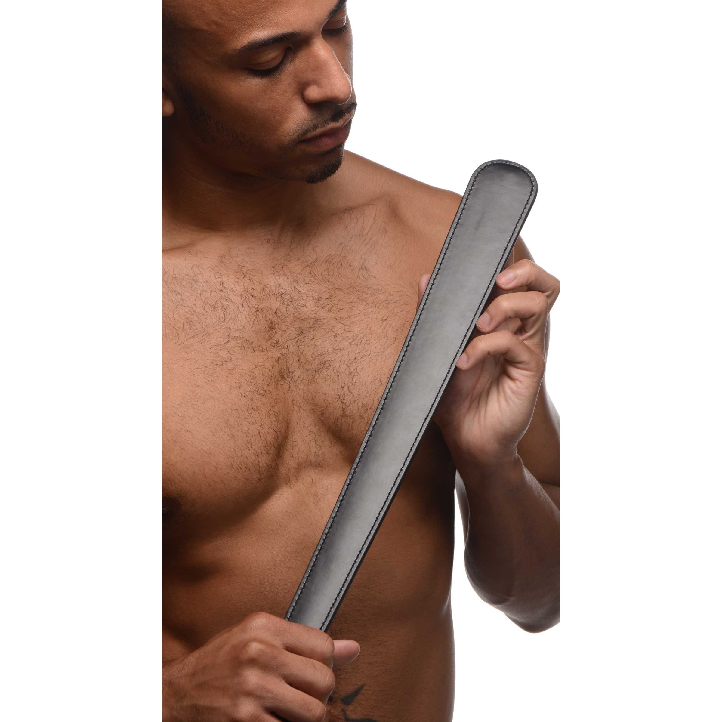 This long, strong paddle has a backbone! Built with a long, metal spine inside, it will deliver powerful and biting pain upon impact! Make your partner squeal as you rub the smooth, flat surface of the PU leather against their tender skin in between paddling. Enjoy the look, feel and use of this classing slapper paddle as you use it against sensitive areas such as the thighs or buttocks!