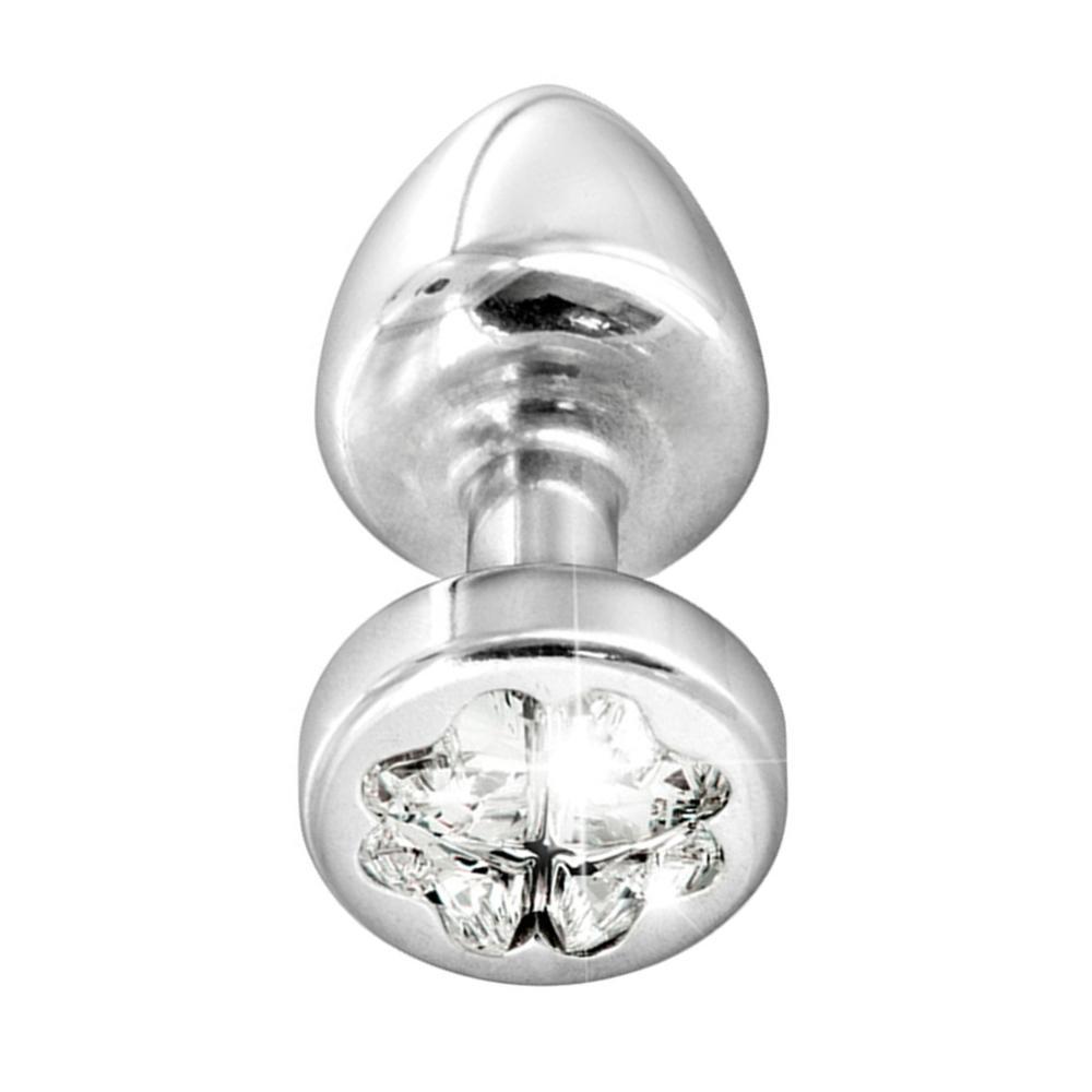 This uniquely designed Clover Princess Anal Plug features a genuine and stunning Swarovski crystal set base, featuring a clover design in brilliant, diamond cut, clear crystal. Silver plated with a smooth and sleek finish, the petite plug is the perfect introduction to anal adornment or pleasure for new users, or a must-have accessory for those with an existing excitement toward all things 'back door.' Ideal for any gender, this piece is too special to keep hidden away and is a mandatory accessory for those who like to show a little sparkle from the rear!
