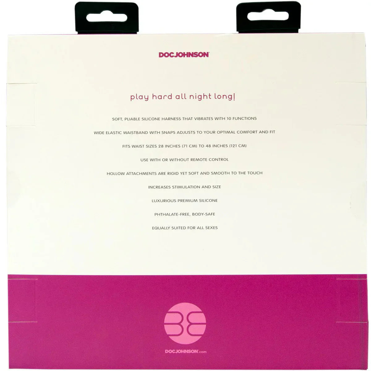 - Premium Silicone Harness with Built-In 10-Function Vibrator. Stretches to Fit Waists 28" (71cm) to 48" (121cm)