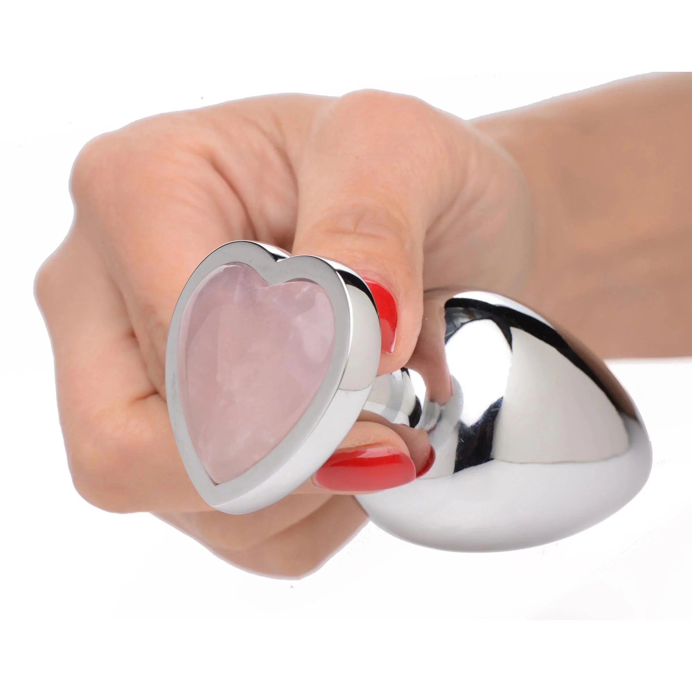 Booty Sparks Gemstones Rose Quartz Heart Anal Plug - Silver/Rose Quartz / Small is backordered and will ship as soon as it is back in stock.