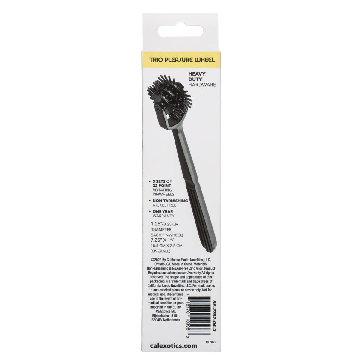 Indulge in endless spine-tingling pleasure with the daring Boundless Trio Pleasure Wheel. The teasing pleasure wheel is made to thrill with three 22-point rotating pinwheels, heavy-duty hardware, and non-tarnishing material.