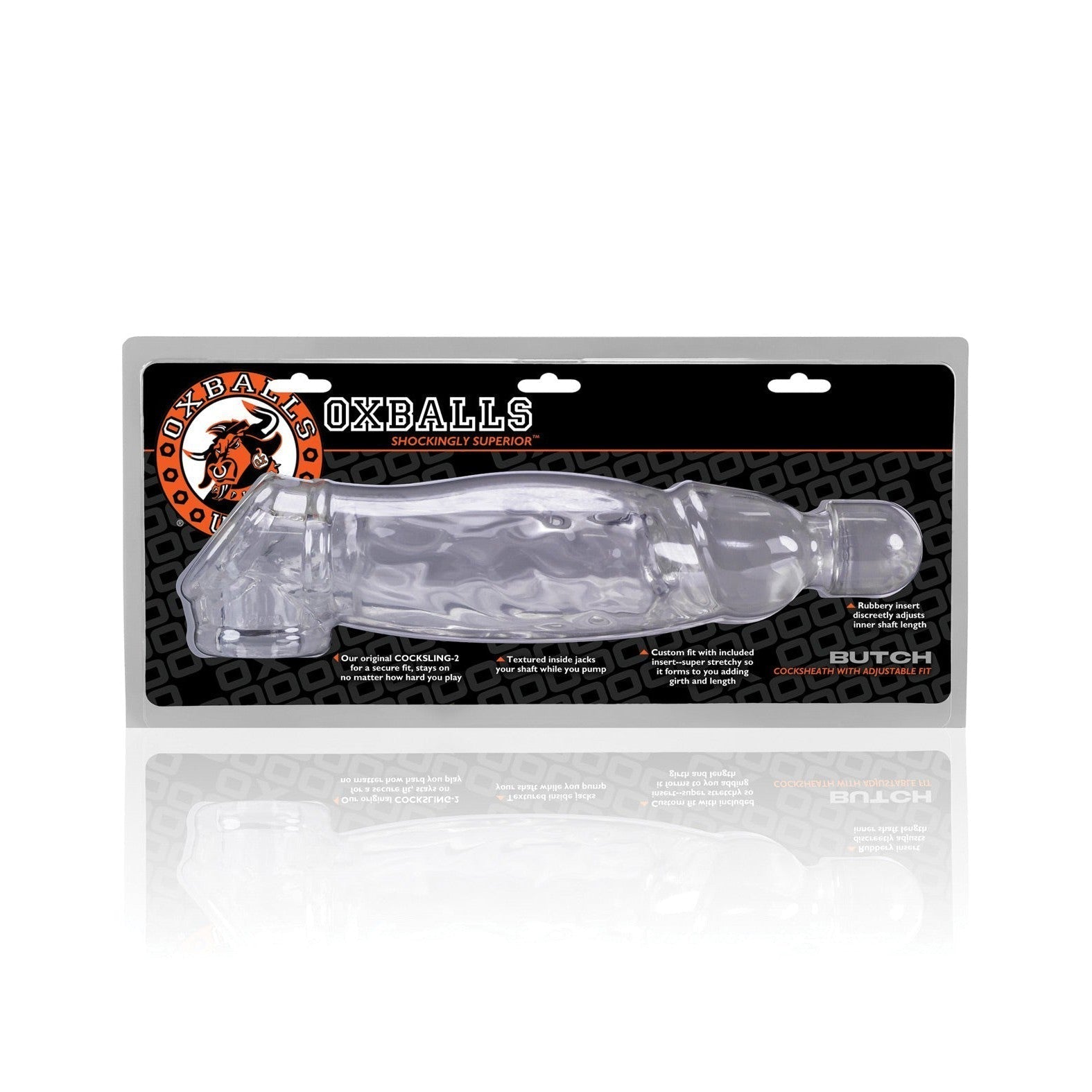 Butch is a cocksheath with a built-in COCKSLING-2 attached at the base. The sling keeps this firmly melded to your body no need to worry about it slipping and sliding. Each BUTCH cocksheath comes with a fitted bullet insert designed to help you customize the fit and feel. The blubbery insert is designed to "lock" into the inner chamber, letting you adjust the tightness of the inner length on your shaft.