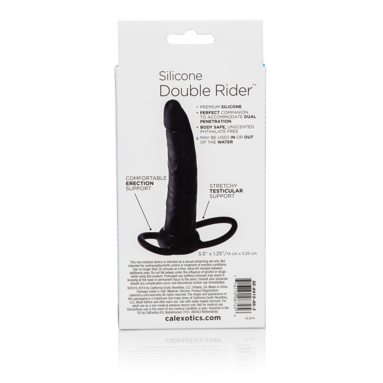 The Cal Exotics Double Penetration Dildo offers the perfect accessory to enable the ultimate in dual stimulation via double penetration, without the need for a third party or difficulty of a handheld device. The device fits safely and snugly, giving optimal penile and testicular support, for either fully erect or resting driver action.
