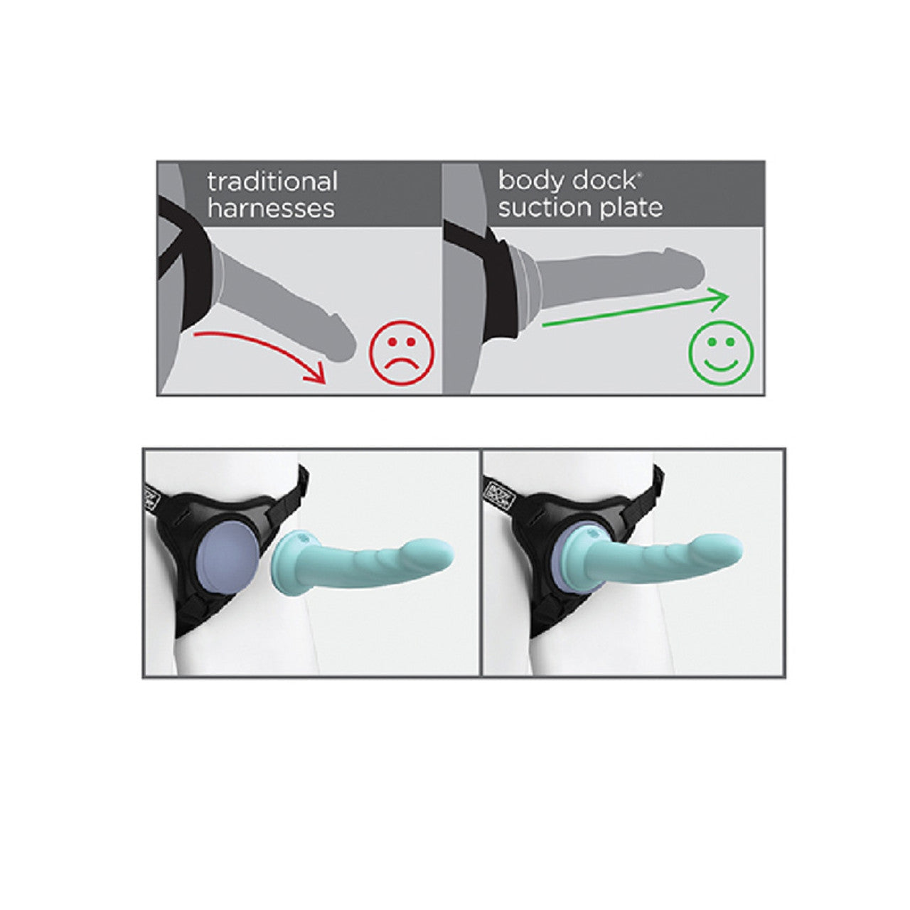 - Body Dock® SE is compatible with Dillio® & other suction cup dildos