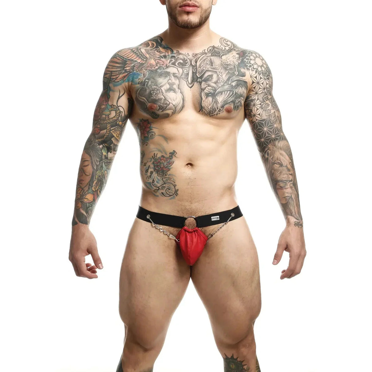 The Chainlink Jockstrap is made of strong faux leather in sleek black and other new colors. With minimal coverage at the back, sweat can evaporate more freely offering the wearer a more comfortable fit. A chain-link pouch at the front supports the penis without scrimping on sex appeal, whilst wide straps sit on the hips for a supportive finish.