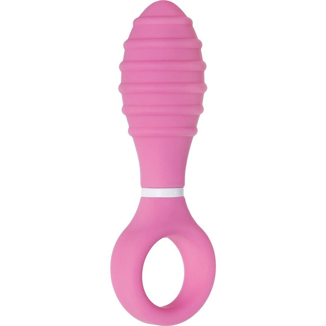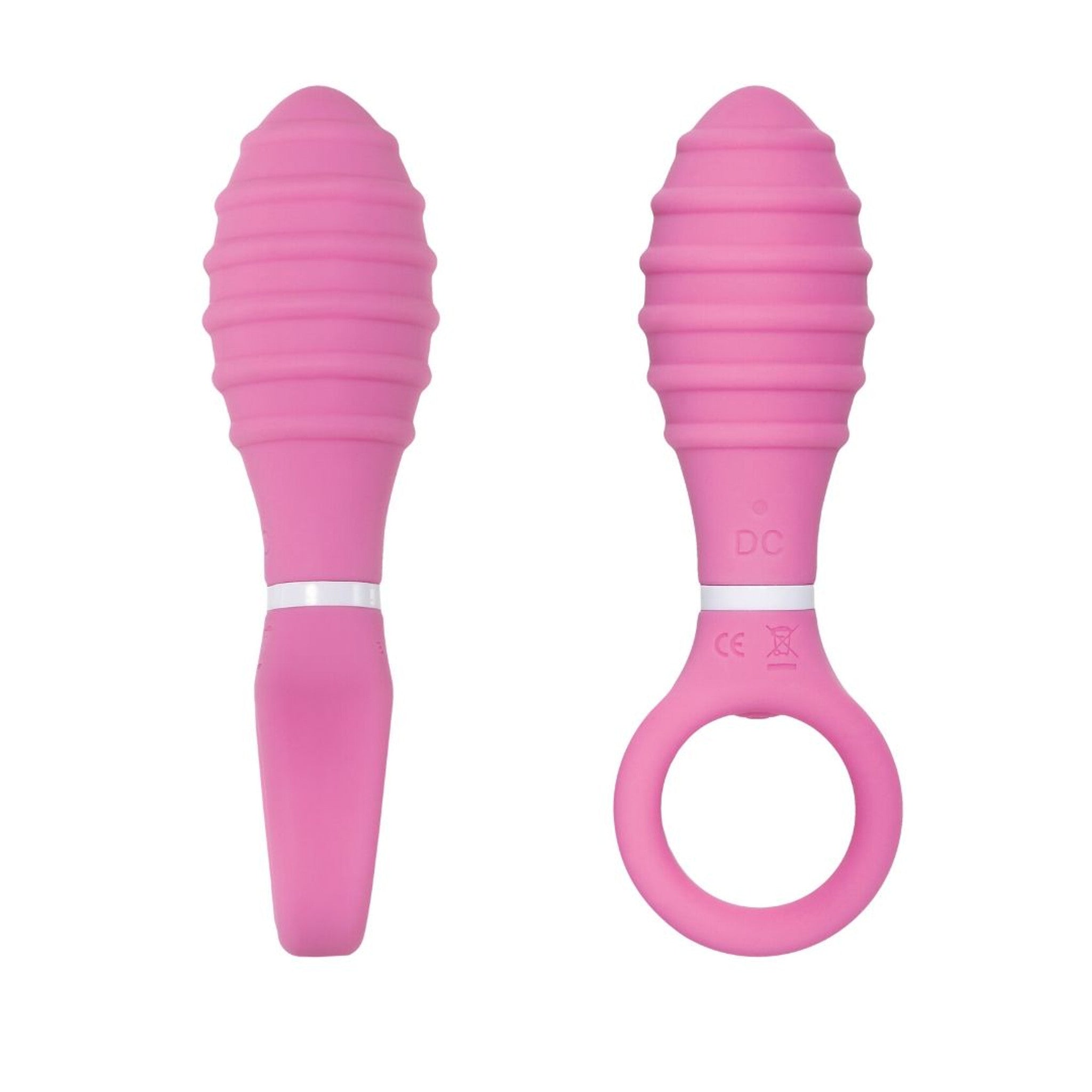 - Two toys that work together or separately - vibrating butt plug with ringed textures for added pleasure, and vibrating clitoral stimulator with raised lines for pleasure