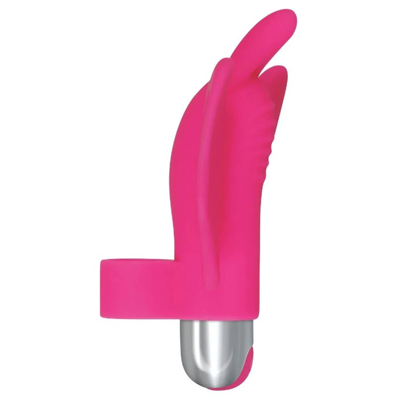 Evolved My Butterfly Finger Vibe is brought to us by Evolved Novelties Inc, a well-known adult toy manufacturer with many impressive toys in its catalog. The Butterfly Finger Vibe is a silicone sleeve with a finger loop that fits your finger and houses a removable bullet vibe. The silicone sleeve is hot pink in color and has a bumpy texture on the tip, while the butterfly antennae serve as bunny ears to stimulate the clit.