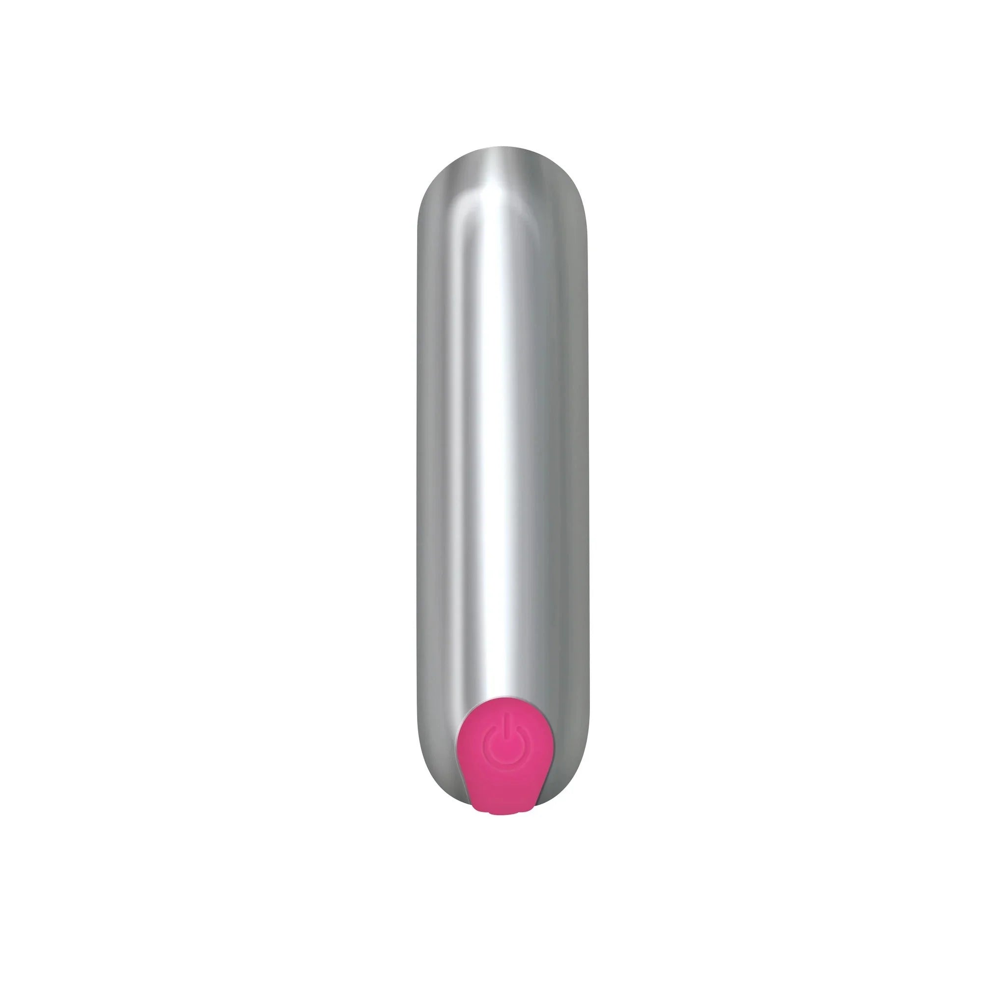 A powerful removable bullet vibe provides the vibrations, and you can scroll between ten powerful vibrating speeds and functions. The bullet vibe is made from ABS plastic and is finished in chrome, and has a single button on the bottom. It is rechargeable via the provided USB cable.