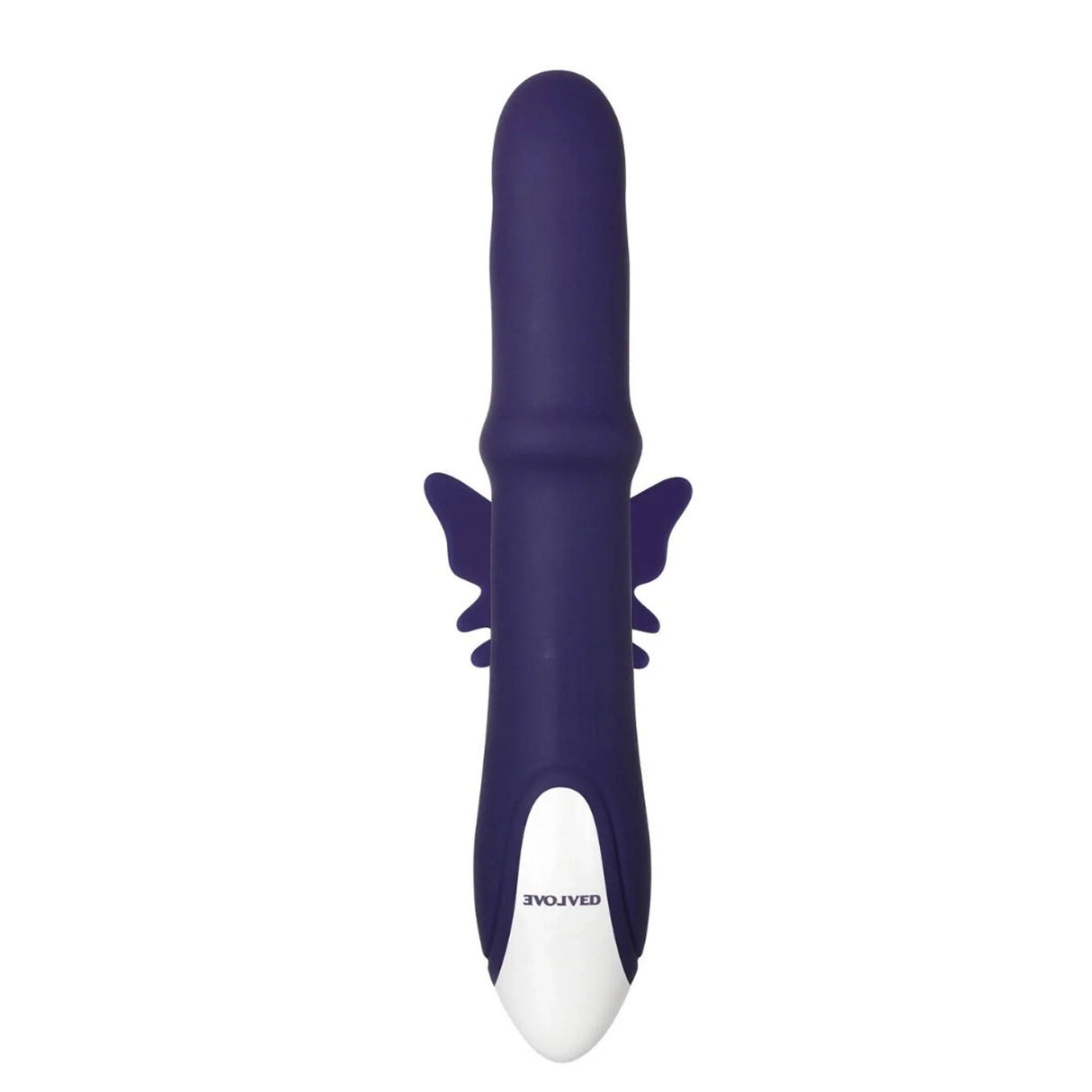 Brought to us by Evolved Novelties, the Evolved Put a Ring on It Sliding Shaft Butterfly Vibe is an impressive sex toy. It features an insertable shaft and a butterfly clitoral stimulator. The shaft has a vibe with eight speeds and functions, and has a sliding ring that goes up and down the shaft with five speeds. The butterfly clit stimulator also has a vibrating motor with eight functions and speeds.