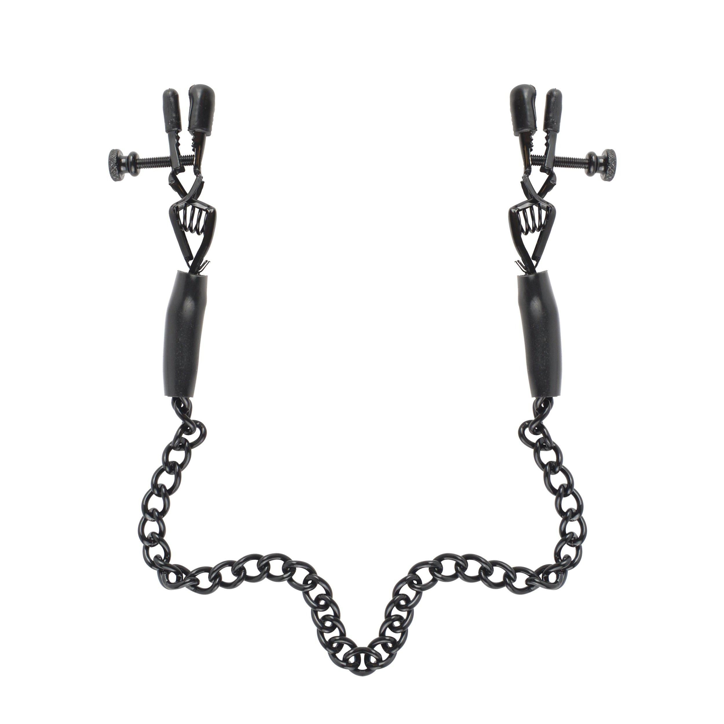 Ideal for use as part of progressive sensory play, your erotic response can be deepened by pulling on the chain or using a vibrator to send delicious shivers through your sensitive nipples. In rubber and nickel-free metal, these nipple clamps should be spot cleaned as needed.