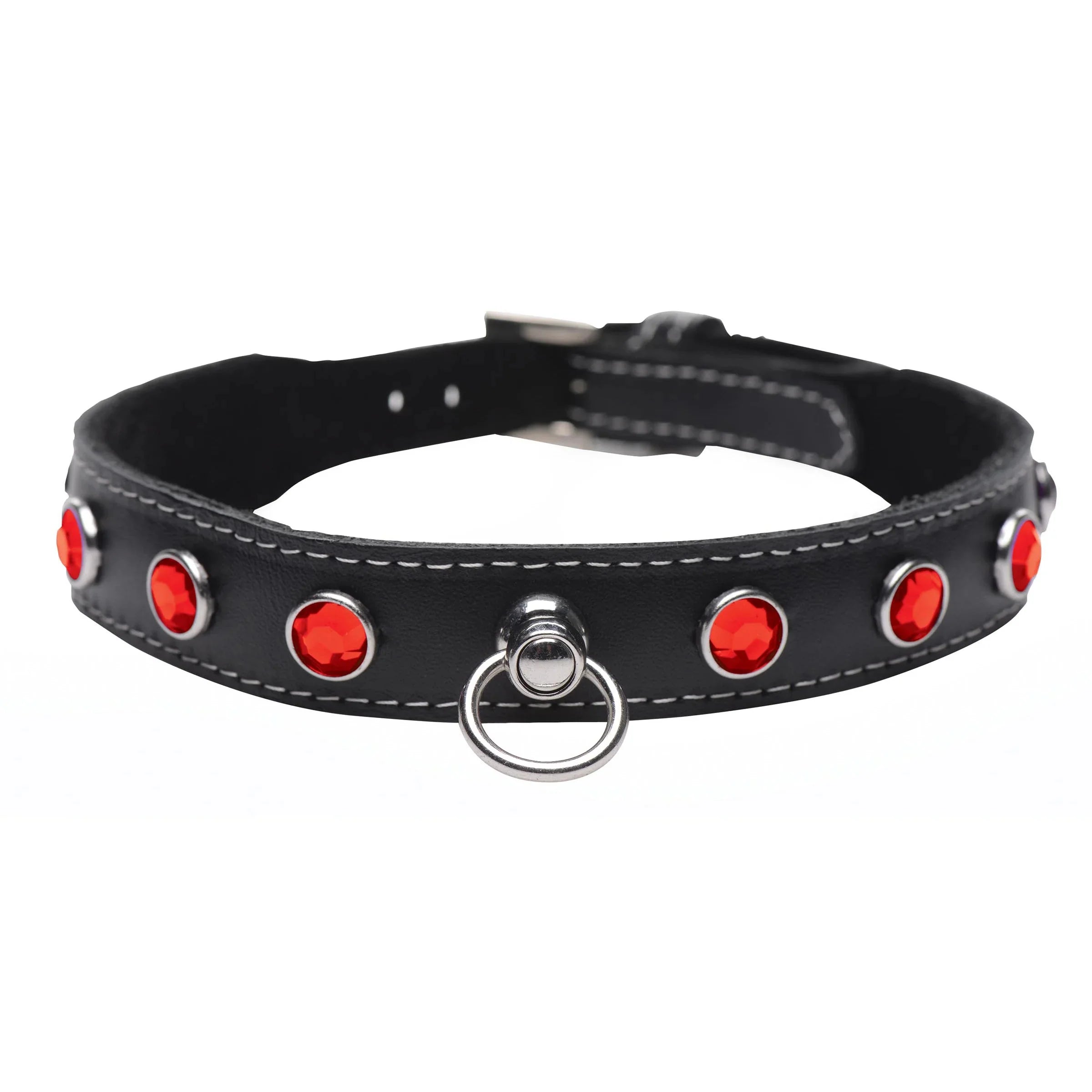 Fierce Vixen Leather Choker with Rhinestones - Red