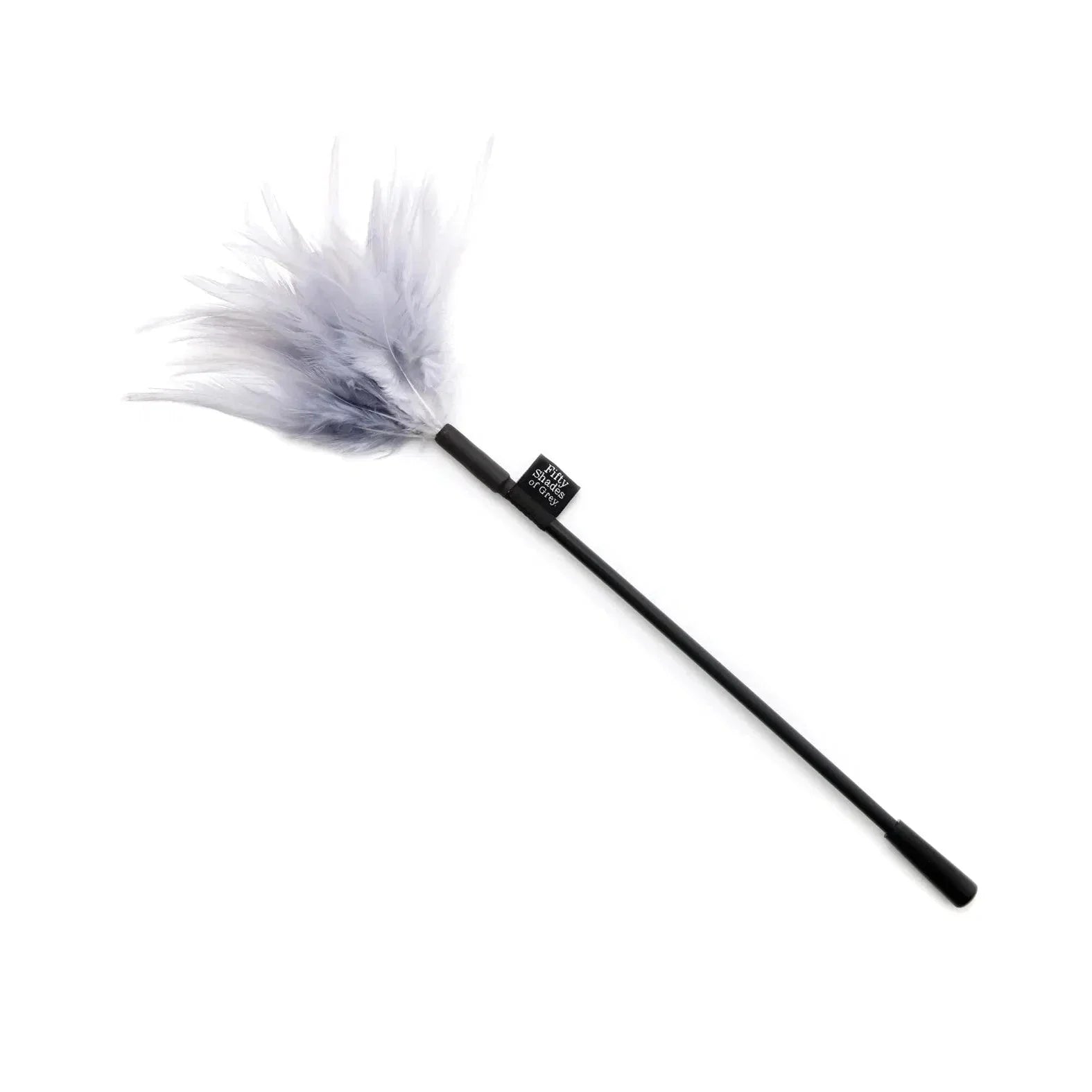 Fifty Shades of Grey Tease Feather Tickler. Allow your arousal to mount slowly under the expert touch of this soft feather tickler. Caressing your skin to attention as it teases your flesh, the plume of feathers leaves a trail of goosebumps in its wake to increase your sensitivity and excitement.