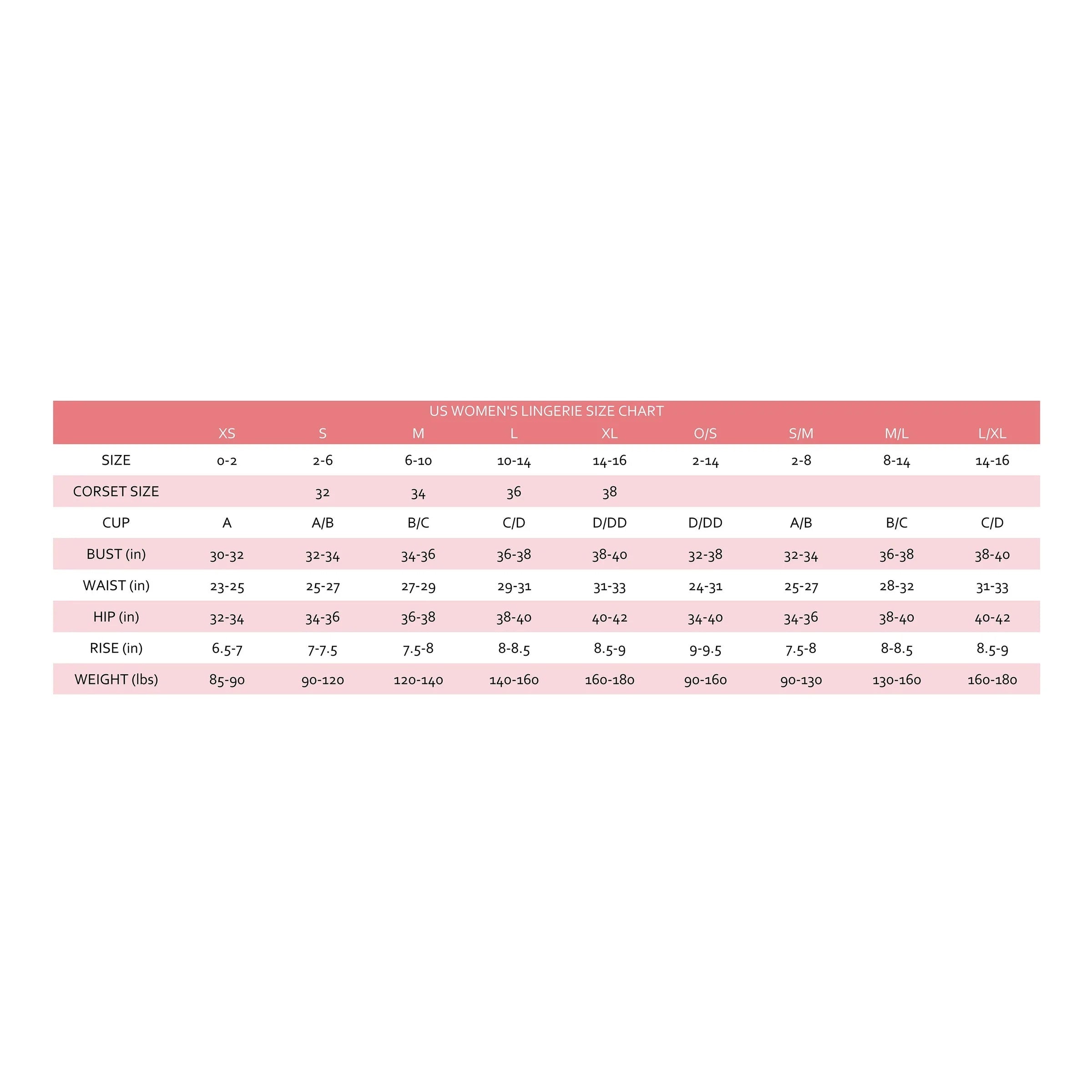Since it is very stretchy, the bodystocking will fit most women. One size is available: Size: 2-14, Cup: B/C, Bust: 32"-38", Waist: 24"-32", Hip: 34"-40", Inseam: 35", Rise: 7.5"-8", Weight: 90-160lbs.