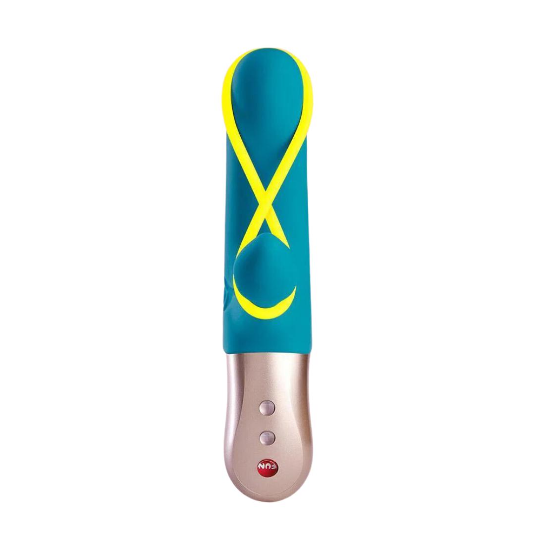 The Amorino rabbit vibe has an exciting design and appealing feature that both beginner and experienced users alike. It is a dual vibrator - the longer extension stimulates the G-Spot; the shorter one stimulates the clit; the removable band helps spread the simulations all over the labia. The Amorino has six vibration patterns and six speeds controlled by the easy-to-use button control interface. The insertable section of the toy is made from body-safe silicone, and the handle is from ABS, but the entire toy is waterproof. The Amorino is USB rechargeable, and it comes with a 2-Year Warranty.