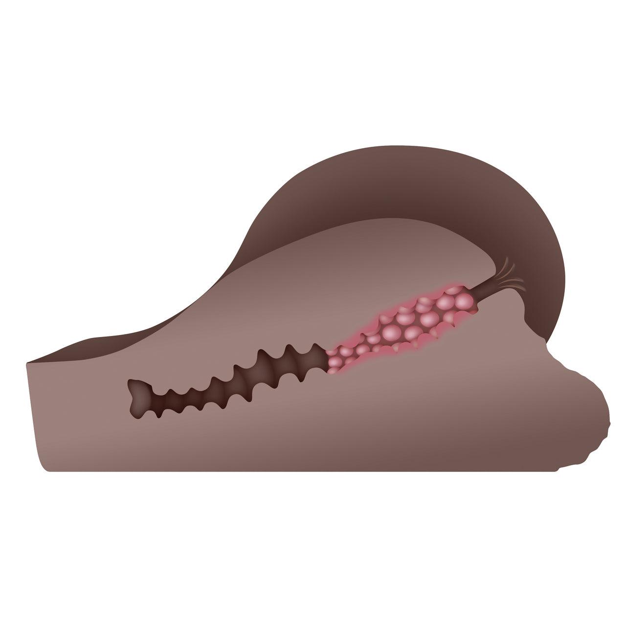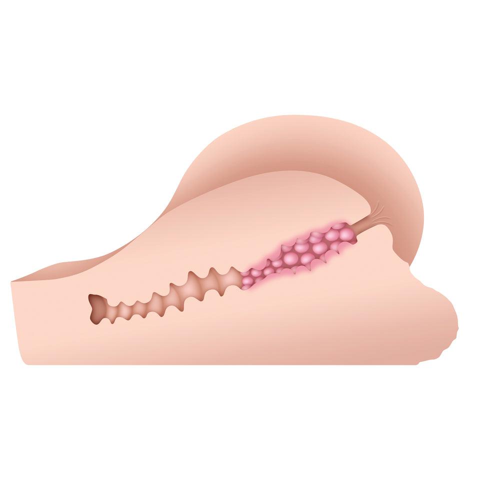 The stroker has a tight inner channel with a close-ended design and ample texture that provides more stimulation as you slide your penis inside the stroker. The close-ended channel provides a tighter feeling and a suction-like user experience. The TPE rubber is compatible with water-based lubes.