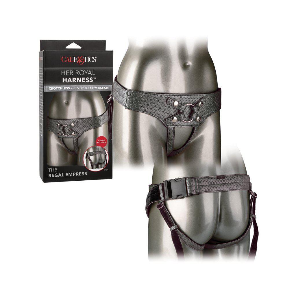 Prepare yourself for indulgent pleasure and premium probe play truly fit for royalty with The Regal Queen. The Her Royal Harness luxurious harness is made for a performance and comfort with a formfitting design, plush velvety lining and adjustable buckle enclosure. The bold crotchless design appeals to even the most dominant with the discreet snaps made to accommodate any size probe ring. The designer vegan leather, quick-buckle waist enclosure and plushy velvet lining give you the ultimate control over comfort.