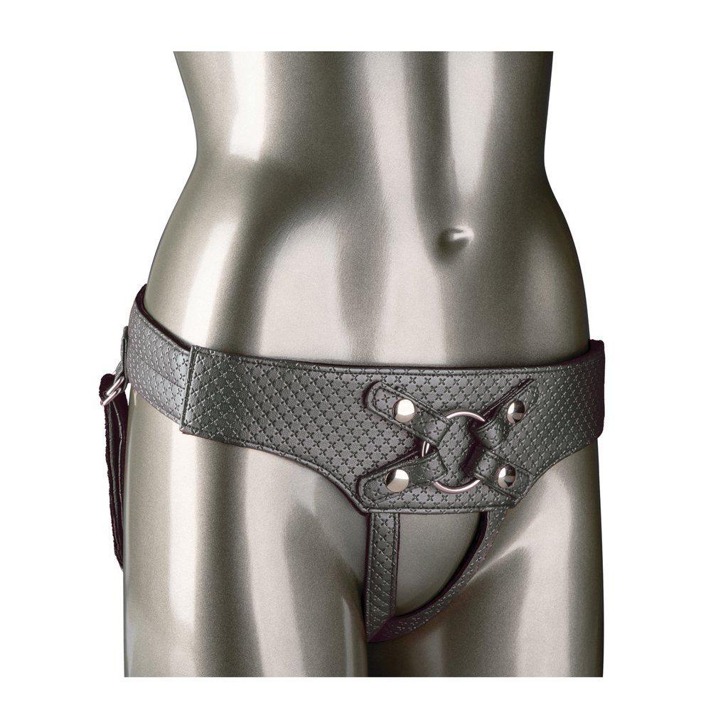 - Stylish and comfortable, while offering premium center of gravity for most-sized dongs and fostering closer skin on skin contact with your partner