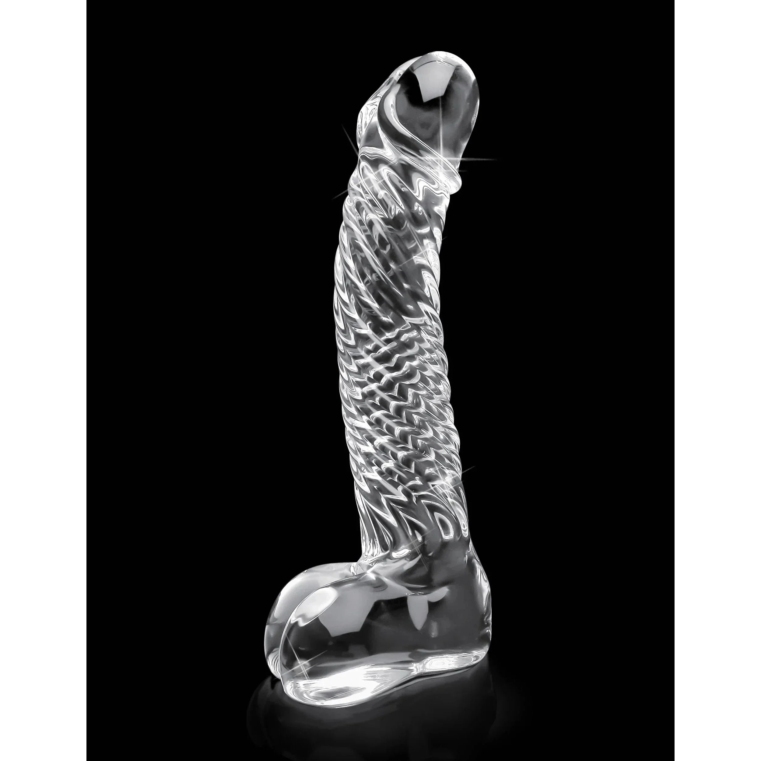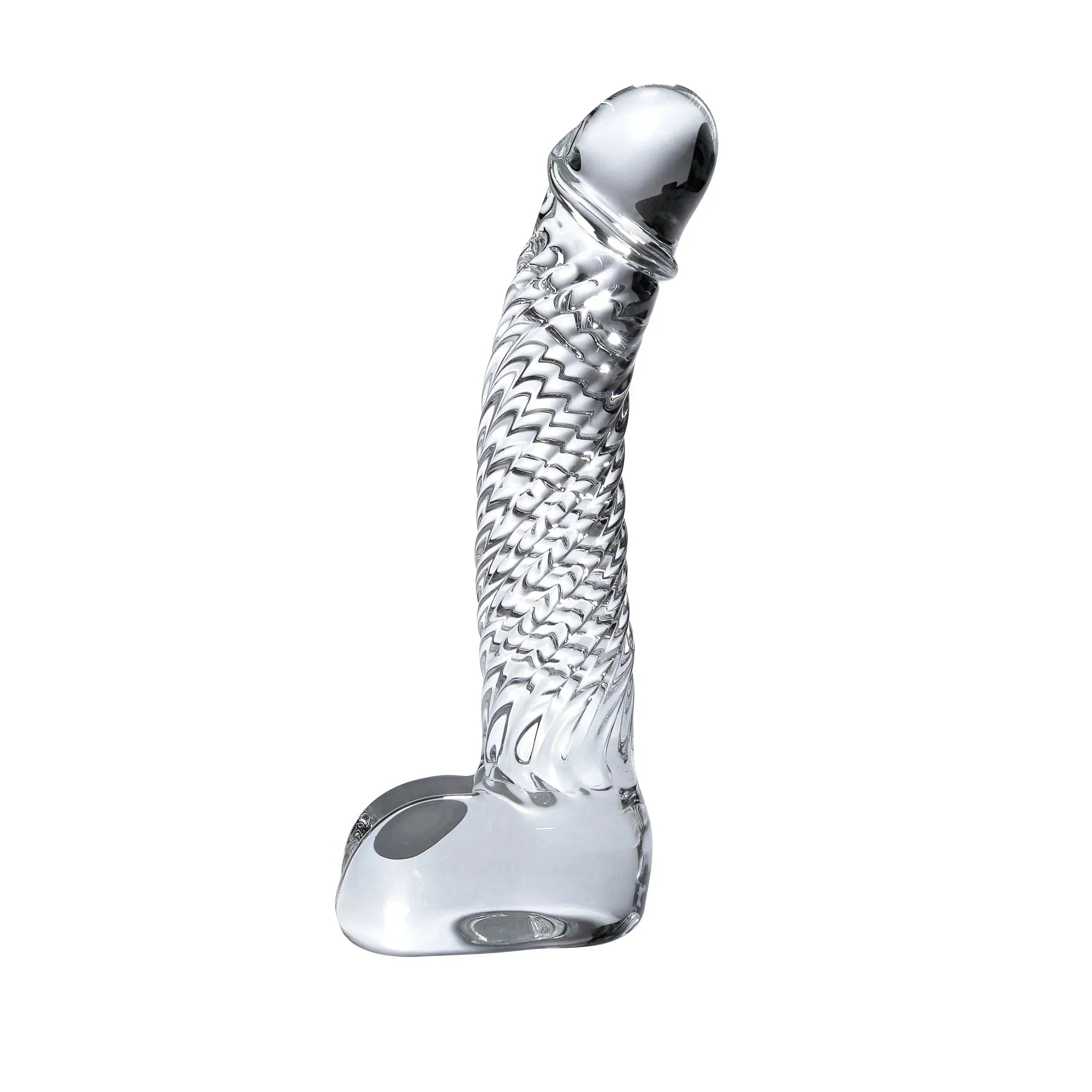 Perfect for beginners, this elegant glass massager No.61 features a tapered tip to ease insertion and a pronounced head that hits all the right spots, while the balls at the base offer an ultra-realistic experience. Cleverly curved for explosive G-Spot or P-Spot stimulation, you'll enjoy additional stimulation thanks to the swirly ribbed shaft. The hypoallergenic glass is nonporous and body safe, and when cared for properly, is designed to last a lifetime.