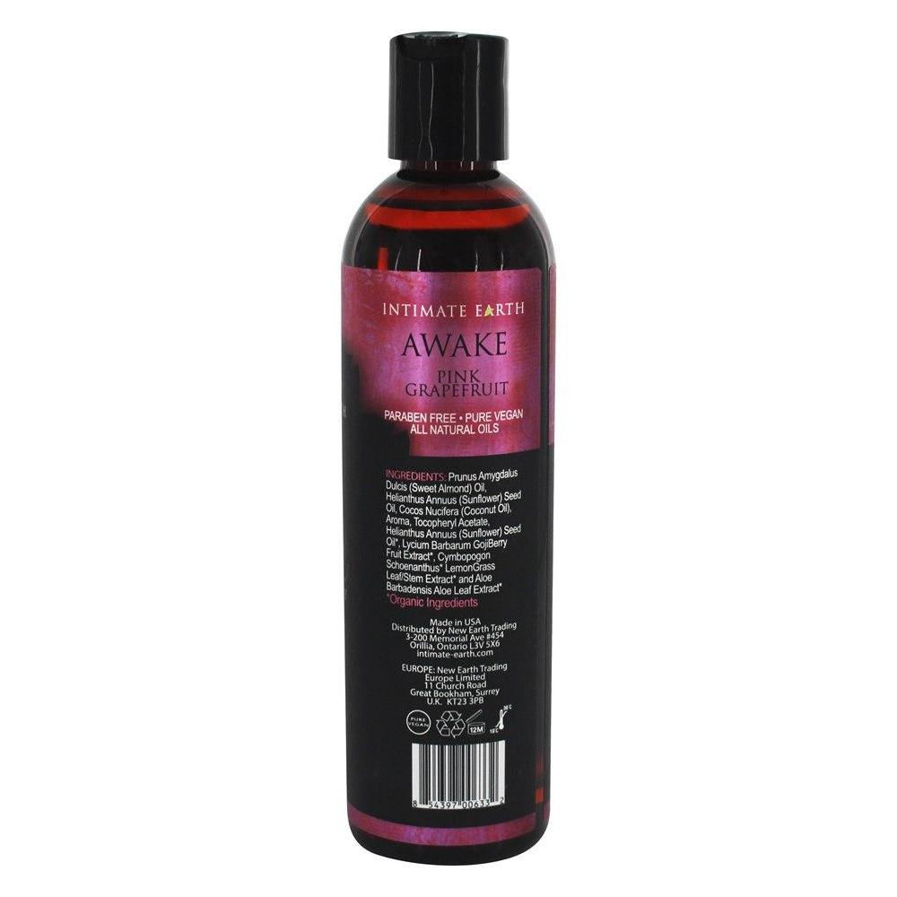 Intimate Earth AWAKE Aromatherapy Massage Oil Blends the fresh scent of grapefruit with the subtle spice of black peppercorn. Intimate Organics has set the standard in natural massage oils. The quality you have come to love now comes in the unique and invigorating AWAKE Black Pepper & Pink Grapefruit Scent. Intimate Organics has perfected the fresh & zesty scent in this Sweet Almond Oil based Massage Oil.