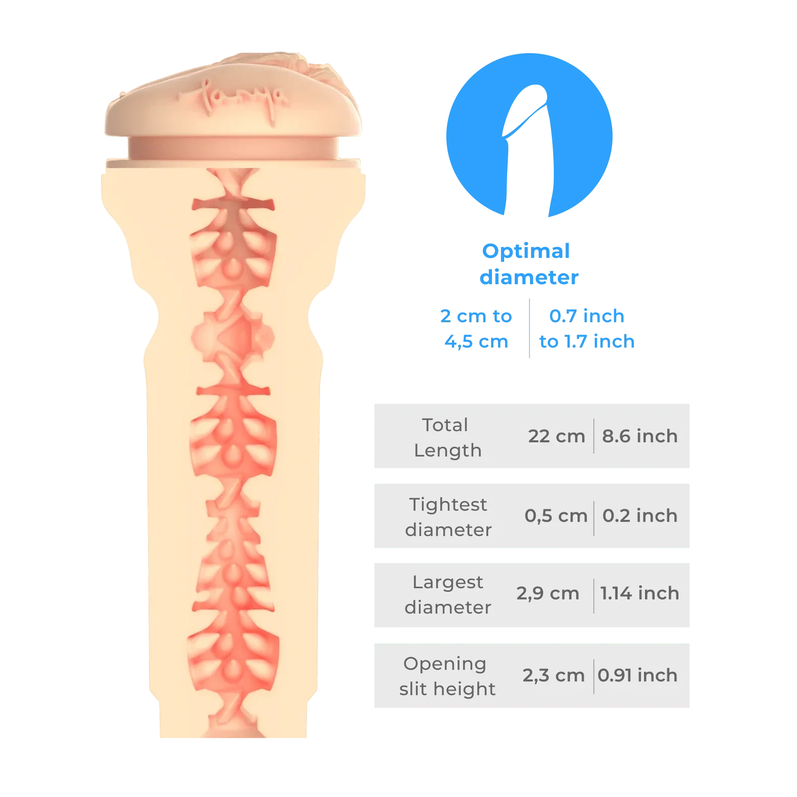 Kiiroo Feel Stars Collection Stroker was molded from the Star real-life body parts. You can Feel each exquisite detail of her anatomy replicated in our incredibly soft skin-like material, paired with a sleeve that is packed with ribs and bumps for your personal pleasure.