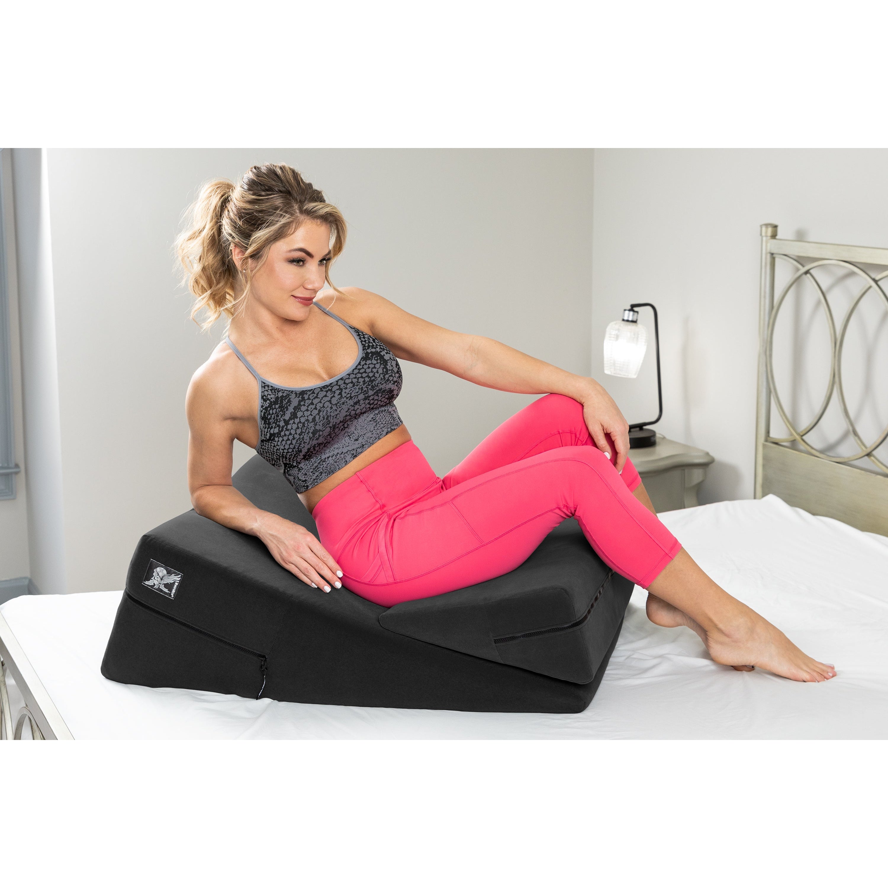 The Wedge/Ramp Combo has been hailed as the "greatest invention for sex since the bed." The best-selling combination of the sex ramp and sex wedge cushions by Liberator sets the stage for enhanced lovemaking and intense orgasms. The Combo helps increase sexual stamina and performance by providing a stable and supportive sex platform using high-density foam inserts. These two expertly crafted sex wedge cushions can be used on any surface. The ergonomic design allows you to experience greater stamina for more extended sex sessions and lets you explore a host of effortless sex positions and transitions. From missionary sex to from-behind positions to cowgirl to sixty-nine, this Shape puts you and your partner's bodies in comfortable and stable positions without the added pressure on the knees, wrists, or back. These innovative foam shapes let you connect on a deeper, more intimate level. The magic of the Wedge/Ramp lies with the removable and machine-washable microfiber cover. The patented interlocking micro-fiber threads remain erect and allow for the sex wedge cushions to stick together, no matter how vigorous your lovemaking. Plus, the fabric feels fantastic against bare skin.