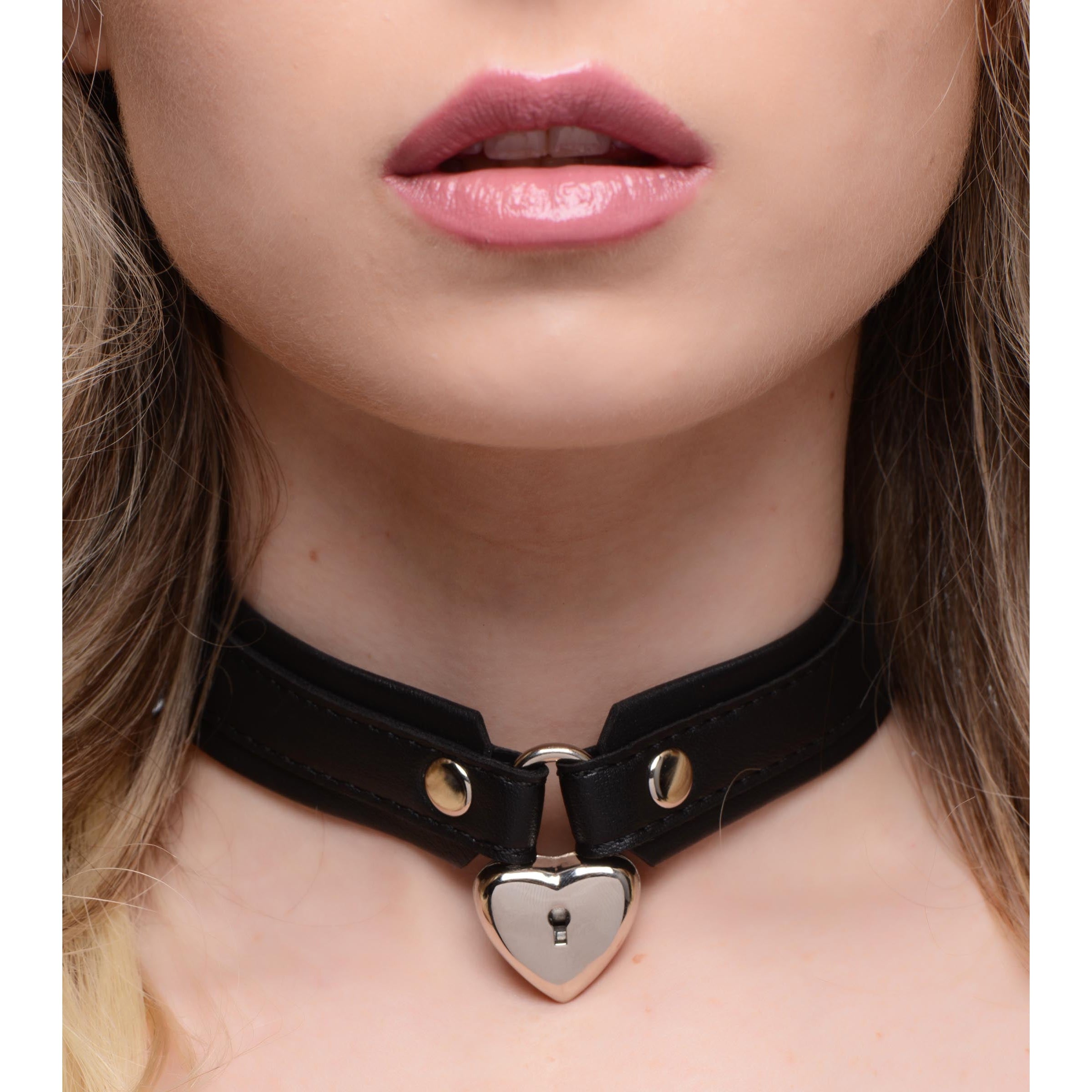 Lock them safely in to your heart by placing this collar around their neck and turning the key! This PU leather collar has a nickel-free, heart-shaped lock at the center that not only creates a pleasing aesthetic for the wearer, it functions as a lock, too! Simply take one of the two included keys and turn them into the hole at the center of the lock to lock up or release the wearer from their collar.