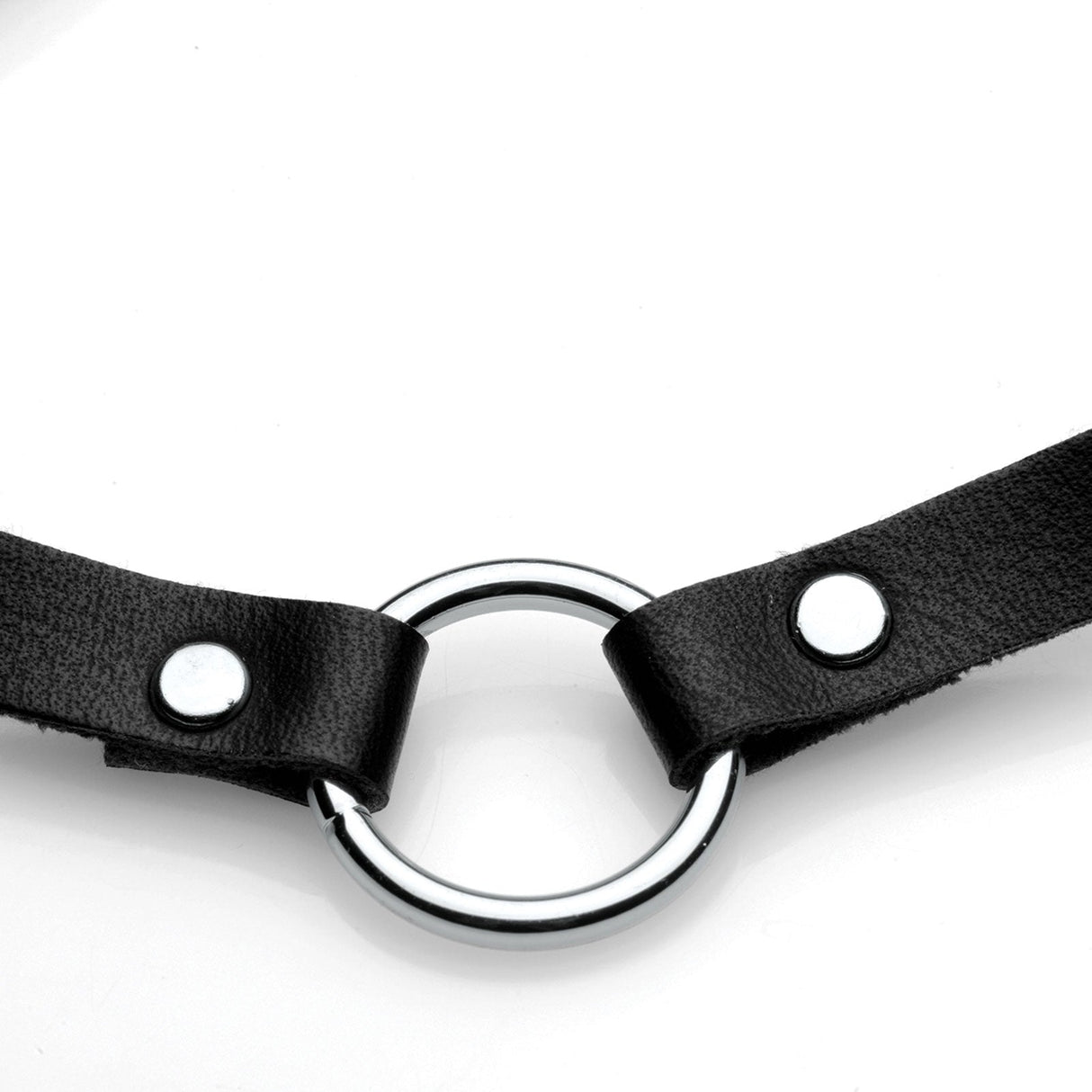 This elegant collar is a great accessory for any outfit. Subtle and refined, it can be worn during the day during work or at night with a lover. The silver O-ring is a subtle and beautiful accent on this black, PU leather collar. With adjustable clasps, this collar can be adjusted to the perfect fit.
