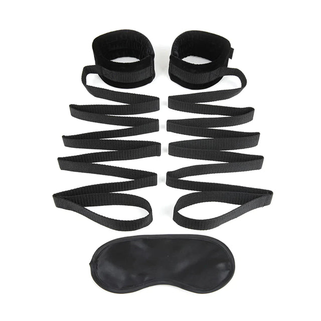 - Includes 2 bondage bed restraints and a satin love mask that will make the perfect addition to any kinky evening you have planned or envisioned