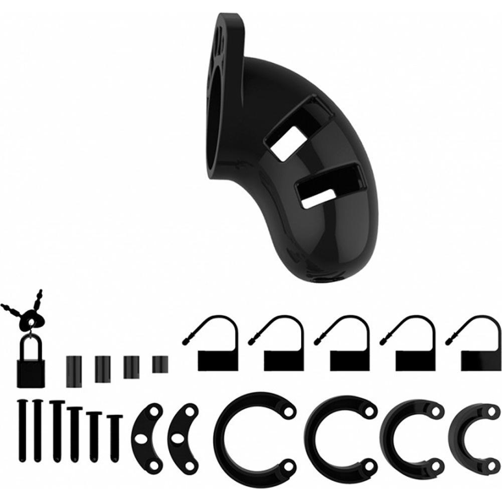 The cage consists of three parts which fit perfectly together-- the main cage, the base ring, and the connector pins unit. The two guidance pins connect the top parts and the oval taper pin connects the rings with the cage. A variety of rings in different sizes and spacer pieces of different lengths will allow you to create the perfect size! A metal lock or plastic tie-wrap lock can easily close the cage. The included tie-wrap locks ensure that they will not trigger the alarm of metal detectors at parties, festivals or even airports.
