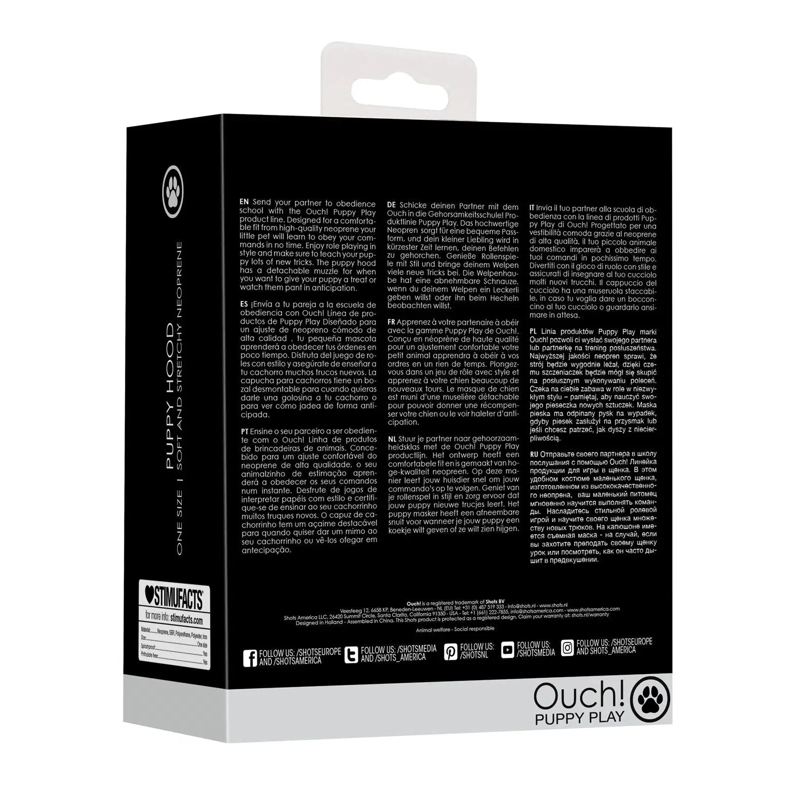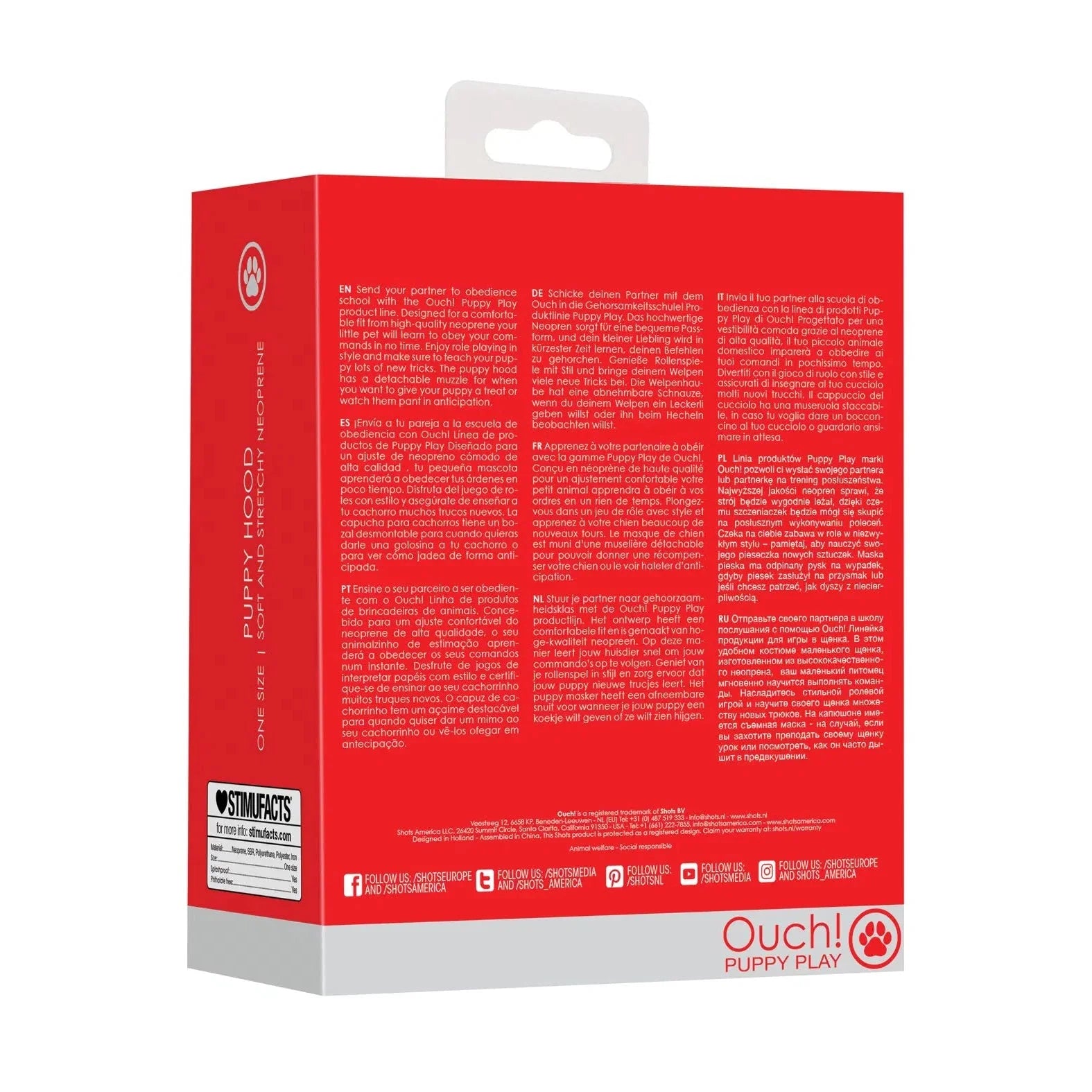 Send your partner to obedience school with the Ouch! Puppy Play product line. Designed for a comfortable fit from high-quality neoprene your little pet will learn to obey your commands in no time. Enjoy role playing in style and make sure to teach your puppy lots of new tricks. The puppy hood has a detachable muzzle for when you want to give your puppy a treat or watch them pant in anticipation.
