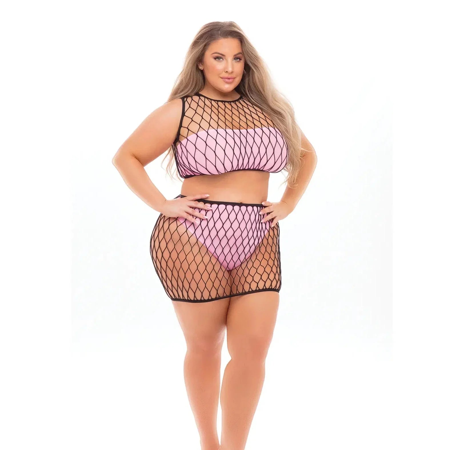 Pink Lipstick Crave You Large Fishnet Cami Top & Skirt, Bandeau Top & Panty - Queen