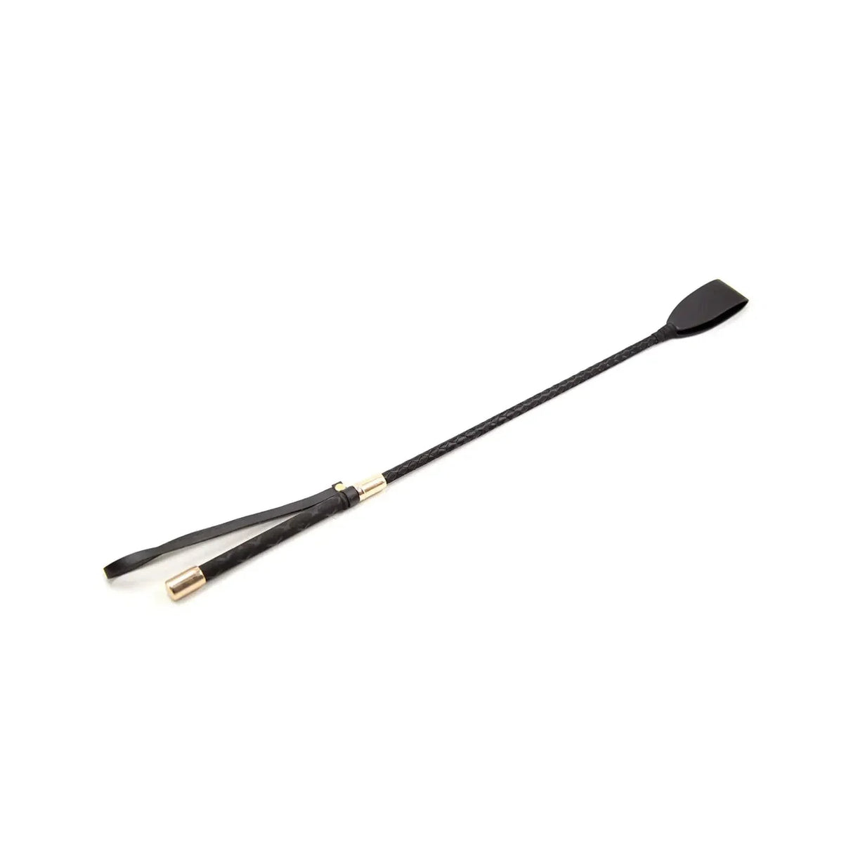 PVC Crop. Braided handle with gold accents. 21 inches overall. Handle is 6 inches. wrist strap.