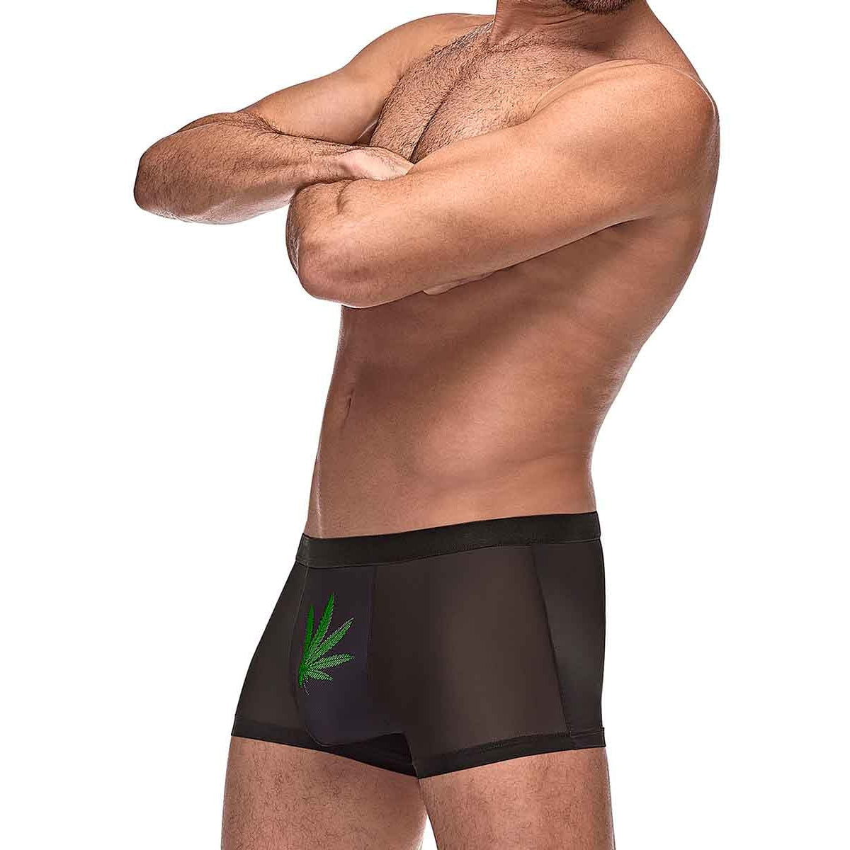 Light up your bedroom tonight in the Private Screening Pot Leaf Pouch Short. High-cut legs and low-rise waist keep this short trim while the modal and micro mesh fabrics keep you cool. Stay high above the rest in this sexy short.