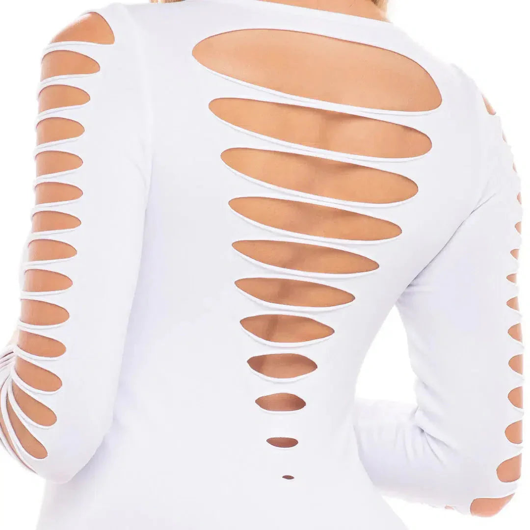 Breaking convention is unapologetically bold with the Bold Babe Longsleeve Dress. This look is the perfect statement piece to feel amazing in or out of the bedroom. You'll be able to do away with traditional style by offering a daring tease of your arms, back, and hips thanks to a series of majestic slash designs.