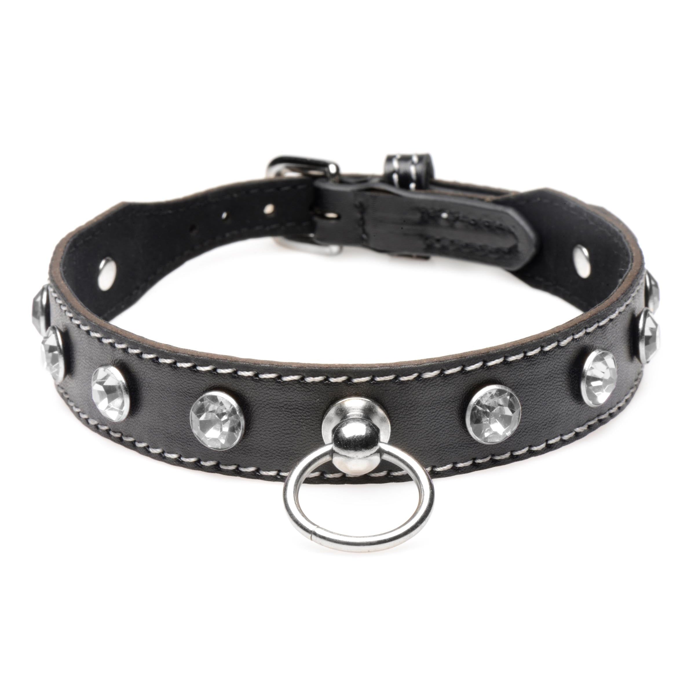 Attract the attention you deserve with this red rhinestone choker! The dazzling rhinestones catch the light as you catch your partner s eye with the fiery, blood red tones! Wear it as an accessory or as a statement! This submissive collar has a nickel-free O-ring attached at the center so you or your partner can attach a leash; let them walk you around as you proudly strut your stuff, or let them pull at the O-ring as they pull you into an embrace, a kiss or down to do devious and naughty deeds!