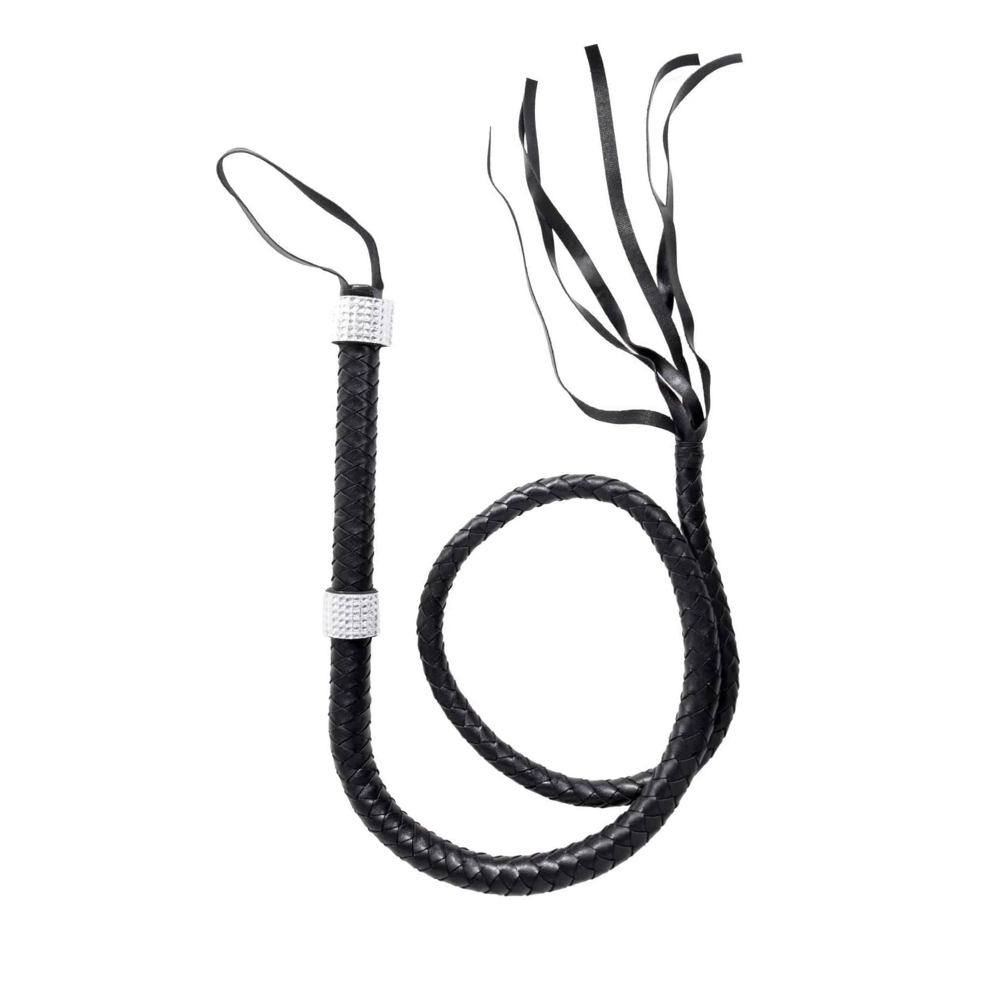 Add a dazzlingly naughty flair to any costume with the Faux Leather 54" Braided Whip With Rhinestone Look Handle. The 4.5-foot leatherette whip spices things up with a rhinestone-look accent braided handle, long braided whip and playful tassels.