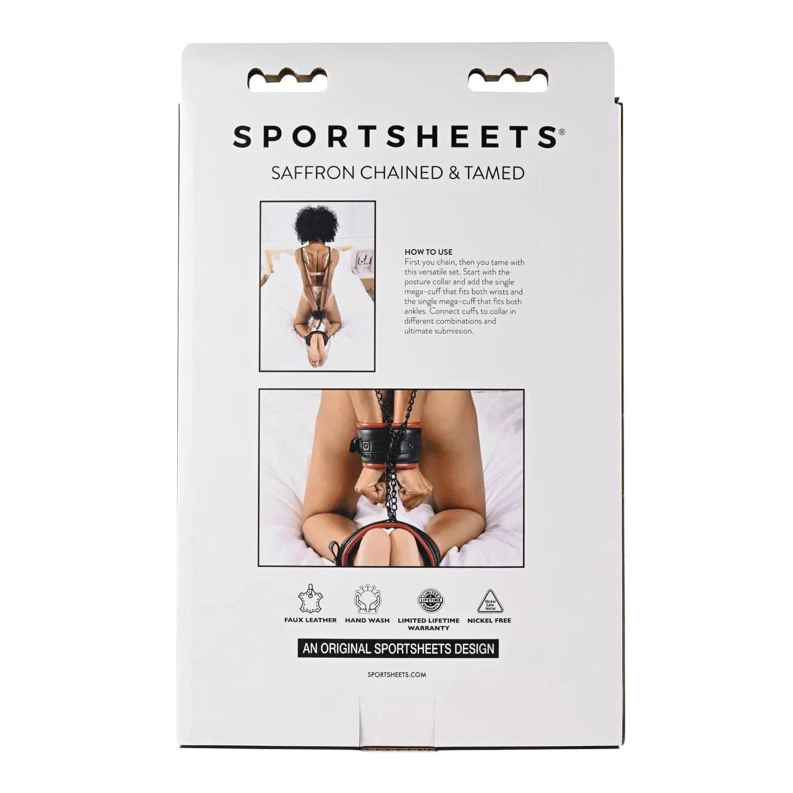Strap them in, things are about to get hot. Enhance your next scene with the Saffron Chained & Tamed, expertly designed to keep your partner at your mercy. Use all the pieces together or interchangeably for optimum positioning. Begin your next session with the posture collar for added control. Then add the double wrist cuff to lock their hands together and the double ankle cuff to keep them in place. Next, connect the cuffs and collars how you see fit and exude your power over them.