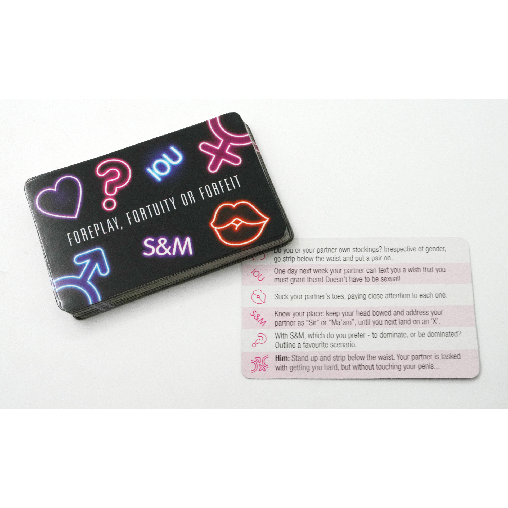 - Pleasure map board game includes 30 kinky forfeit cards, 30 sensual sex cards, 50 score sheets