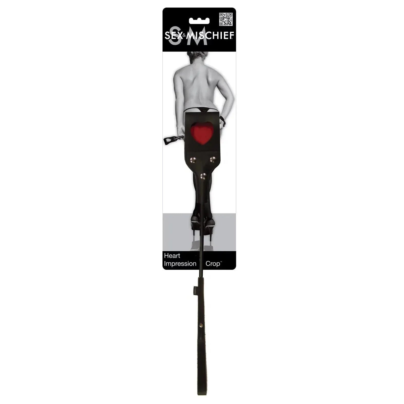 Feel the love with the S&M Heart Crop. With heart cut-out, you're sure to leave your love note on your partner's skin. At 21 inches (55 cm) in length, it features a sturdy black wand with wrist strap.