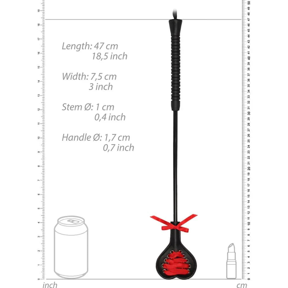 This long handled heart shaped crop with black lace is the perfect way to discipline your partner.