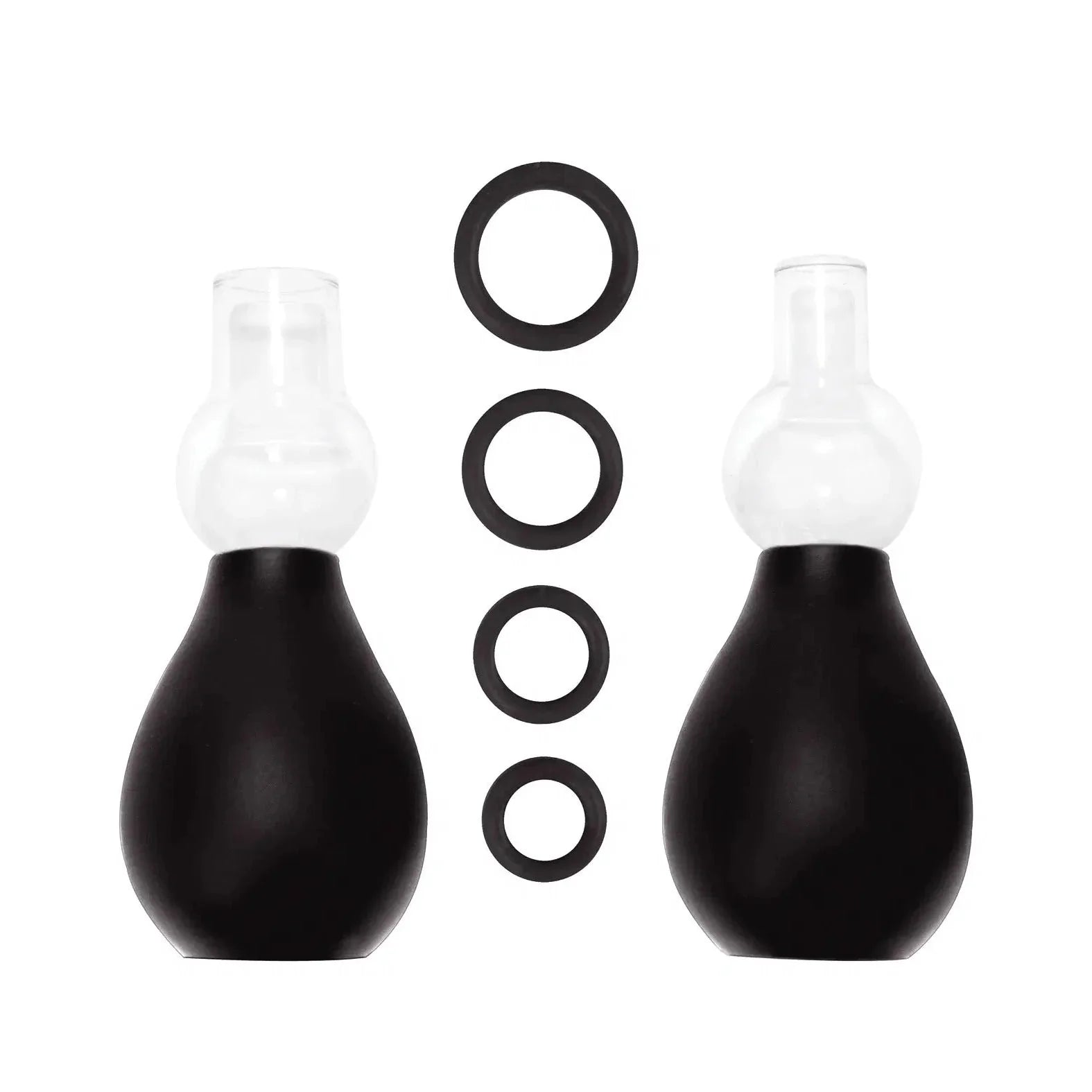 These easy-to-use suction nipple toys will get you pumped up for maximum sensitivity and maximum sensation. Enslave your partner's nips or share the experience - the titillating agony and the engorged delight - like a hickey on each of your nipples. Leave them on while you play or remove them to lick, suck, and pinch the tender nubs. To top it all off, the black top and translucent sucker give them a gorgeous, classic monochrome look!