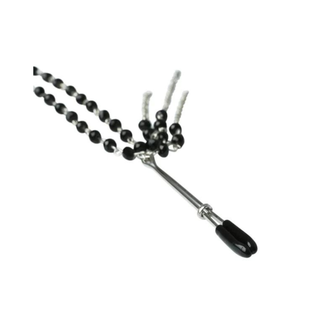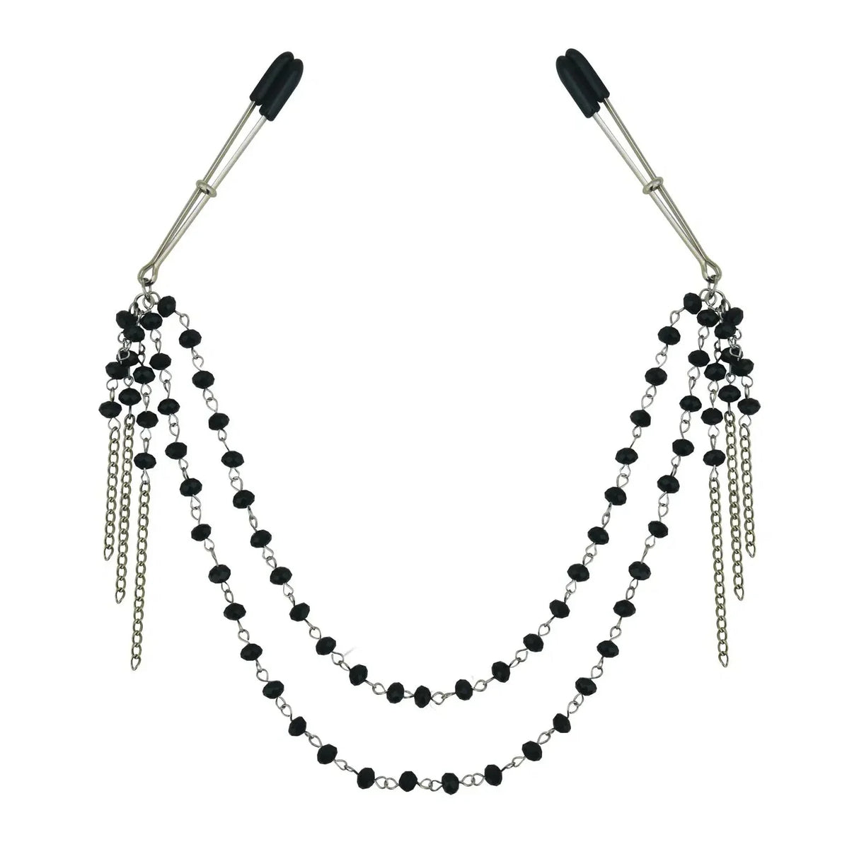 - Connect your playthings' sensitive areas together with a seductive, double-chained jeweled pair of nipple clamps