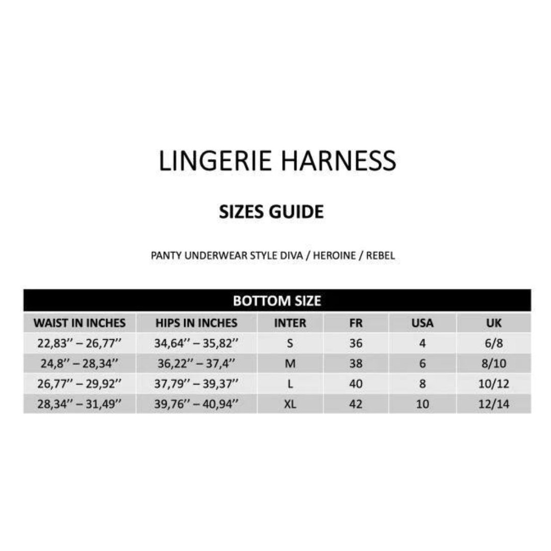 Surrender yourself to your most erotic fantasies and dive deep into pleasure as you slip into the fashion-forward fetish panty! The soft-fitted, mesh and microfiber peek-a-boo panty harness with a stretchy waistband feel great against your skin. To find your size, take a pair of your favorite fitted underwear in a similar style and measure the size flat.