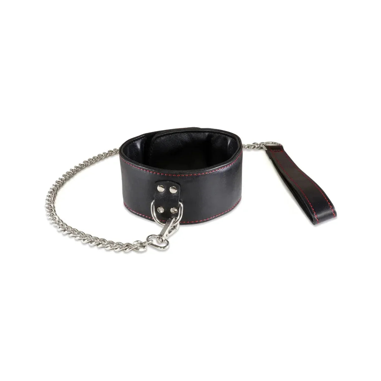 - Fully adjustable collar made with full-grain leather and features a 24" long metal chain