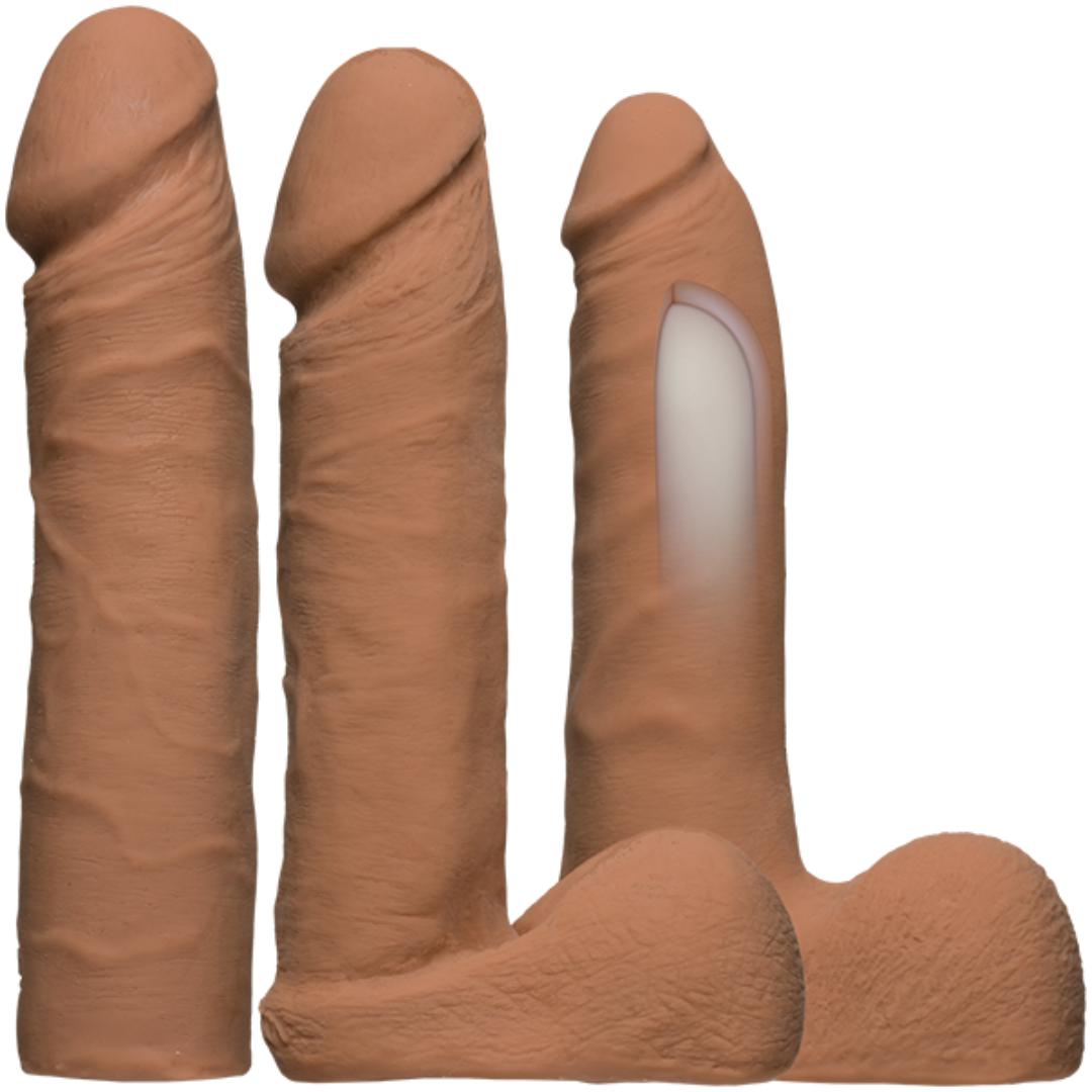 - Comes with 3 dual density ULTRASKYN dildos for the ultimate realistic feel: an 8-inch Realistic Dong, a 7-inch Cock, and a 7-inch Slim Cock