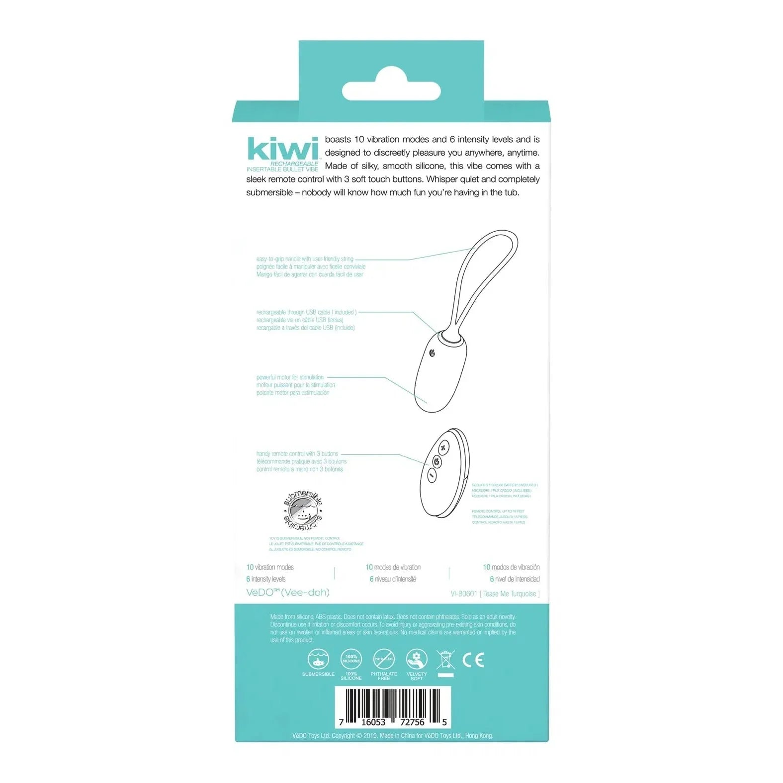 This curvy, classic and cute gizmo should be every pleasure-craver's favorite quick fix. With 10 must-have vibration modes, from steady buzzing to wild pulsating and roller-coaster escalating pulses, VeDO Kiwi bullet vibe wants to stroke your lucky sweet spots one at a time. Whether it's being enjoyed alone or with a partner, the smooth shape effortlessly targets your clitoris, nipples and beyond. The slim, discreet styling won't get in the way of just about any position or act, so it's perfect for bringing to bed with a partner and just as stupendous when flying solo. As an added bonus, it comes with a remote control with 3 buttons, so your partner can control your pleasure from across the room...what an erotic view.